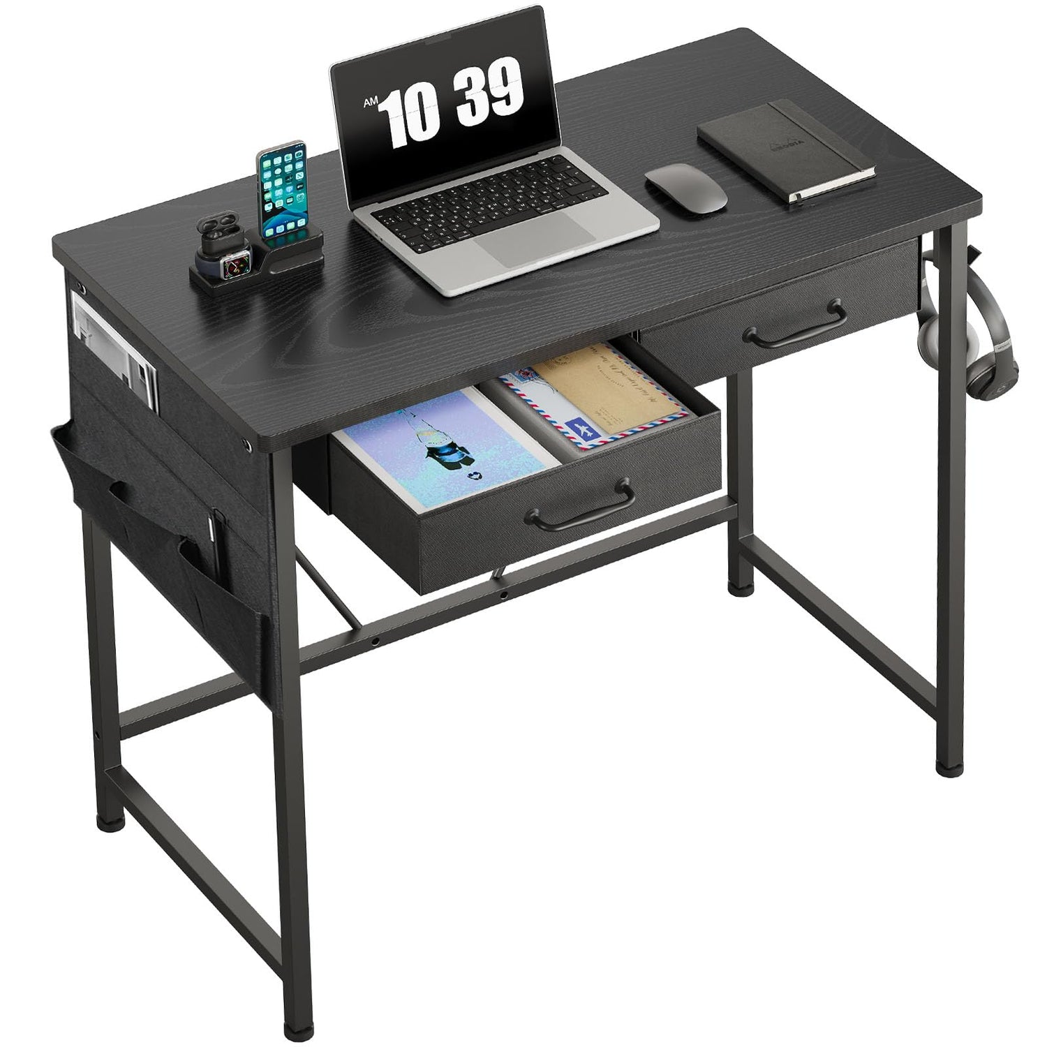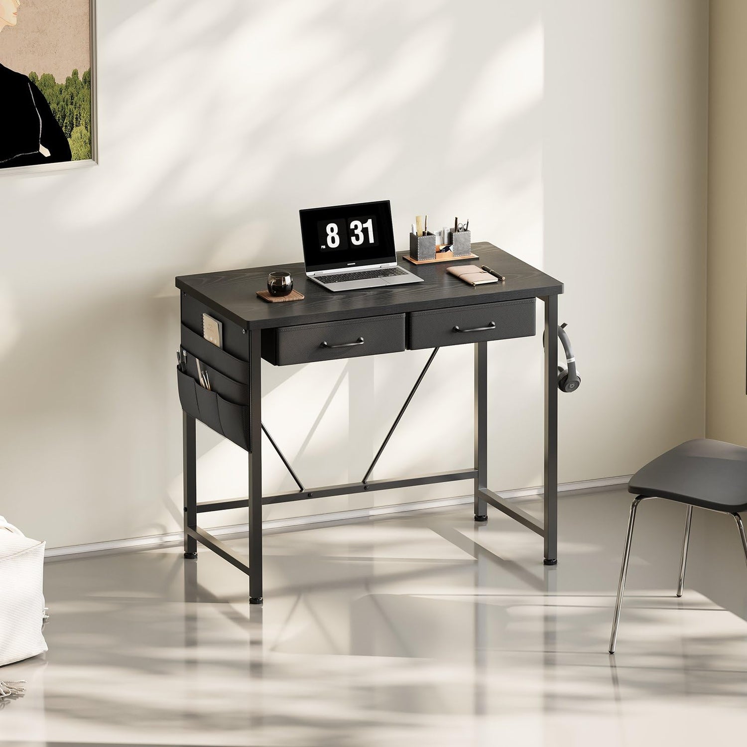 Maihail Maihail Small Desk with Drawers, 31.5 inch Small Computer Desk with Drawers, Writing Desk for Small Spaces, Small Office Desk with Metal Frame, Black