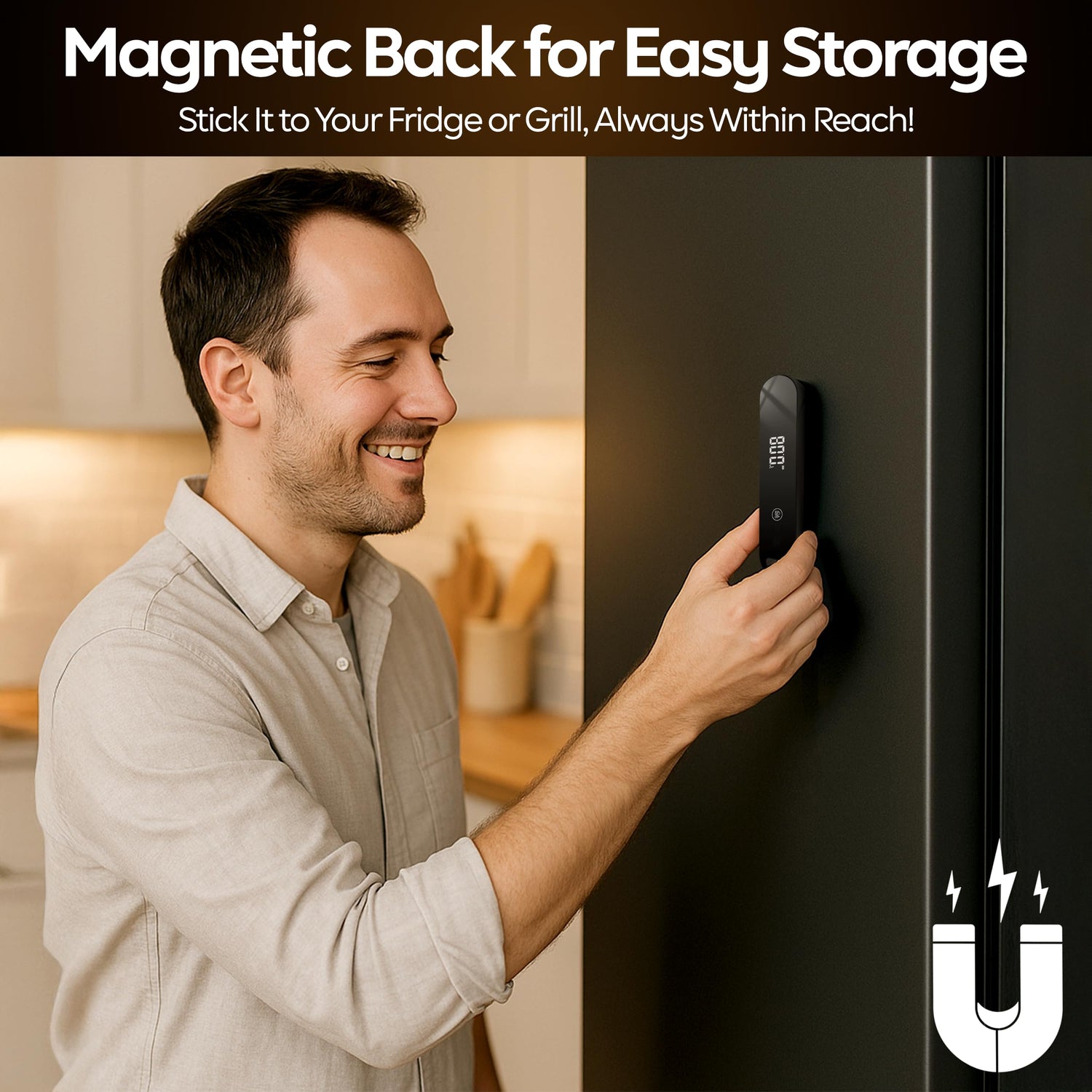 - VERSATILE USE: Instant food thermometer, thermometer with probe offers wide temperature range measurement capability makes it perfect for grilling, cooking, baking, frying and more.