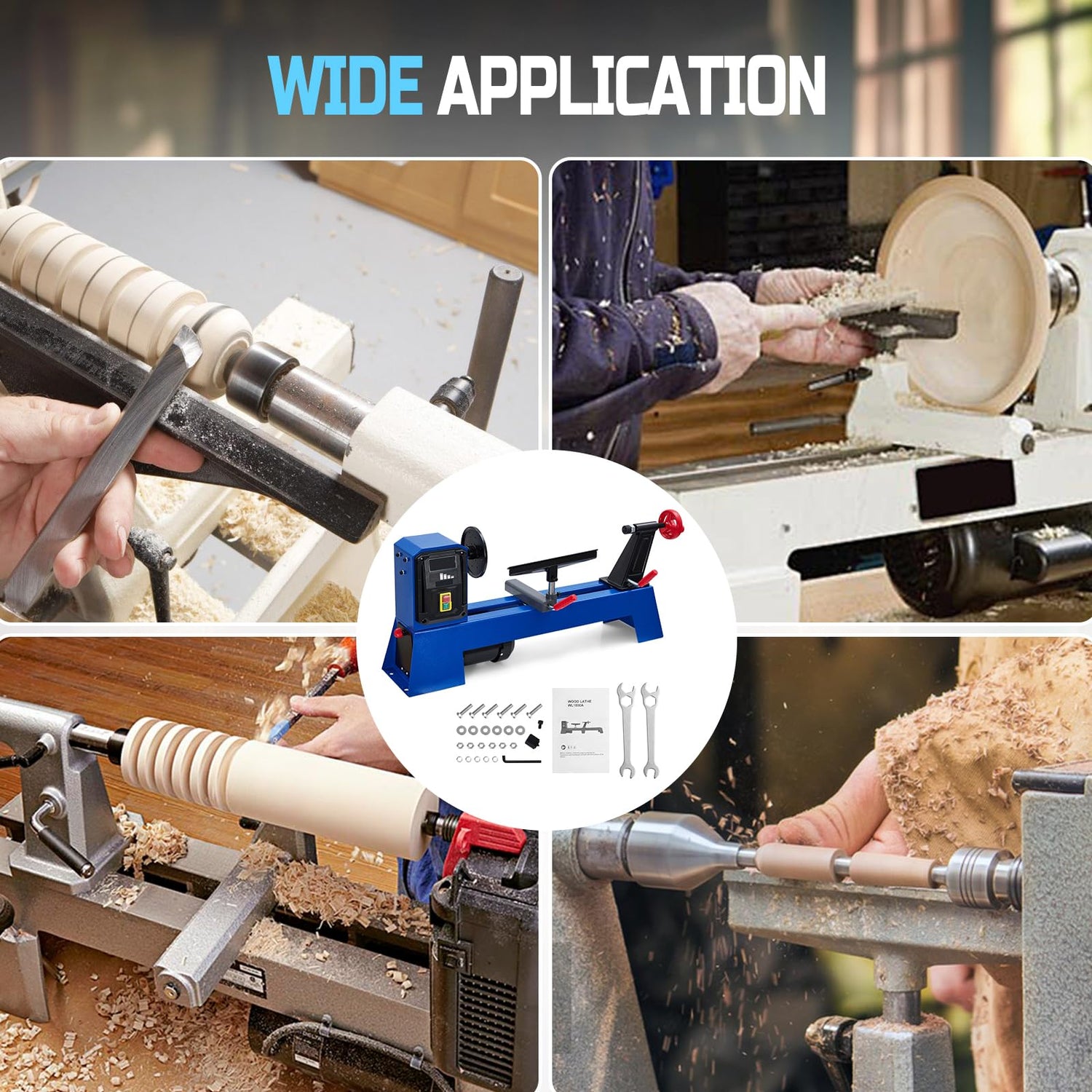 - Versatile Speed Options: With four adjustable speeds (1040, 1480, 2130, 2980 RPM), this wood lathe machine allows you to choose the perfect speed for every project, from intricate details to larger workpieces