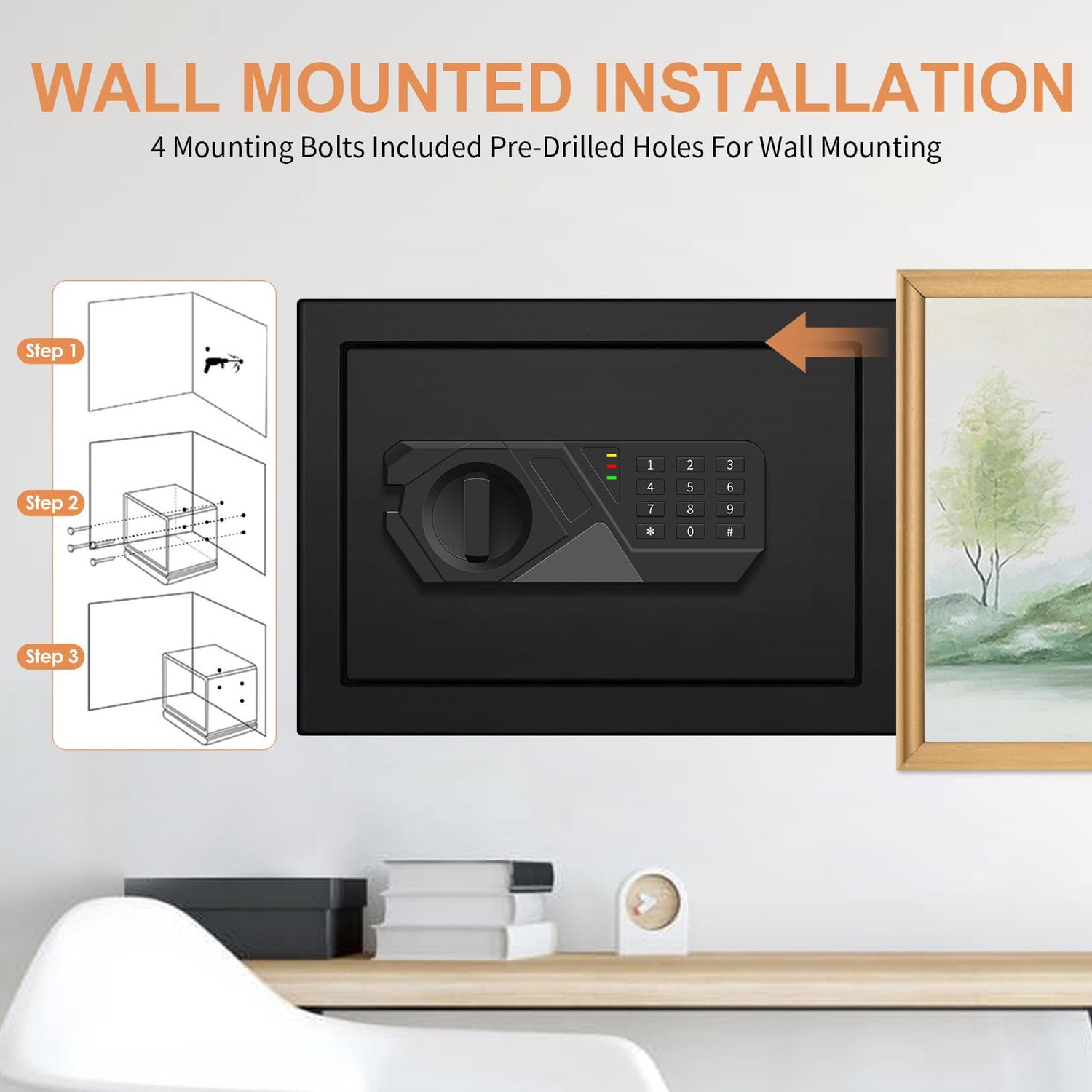 - ANTI-THEFT ALARM & ANCHORING DESIGN: Our home safe comes with a dual alarm system to prevent password guessing and effectively deter unauthorized access. Enter the wrong password 3 times in a row will activate the alarm system and the safe will lock for 20 seconds. Anchoring design makes you easily fix the safe to the wall or floor, improving safety and reliability