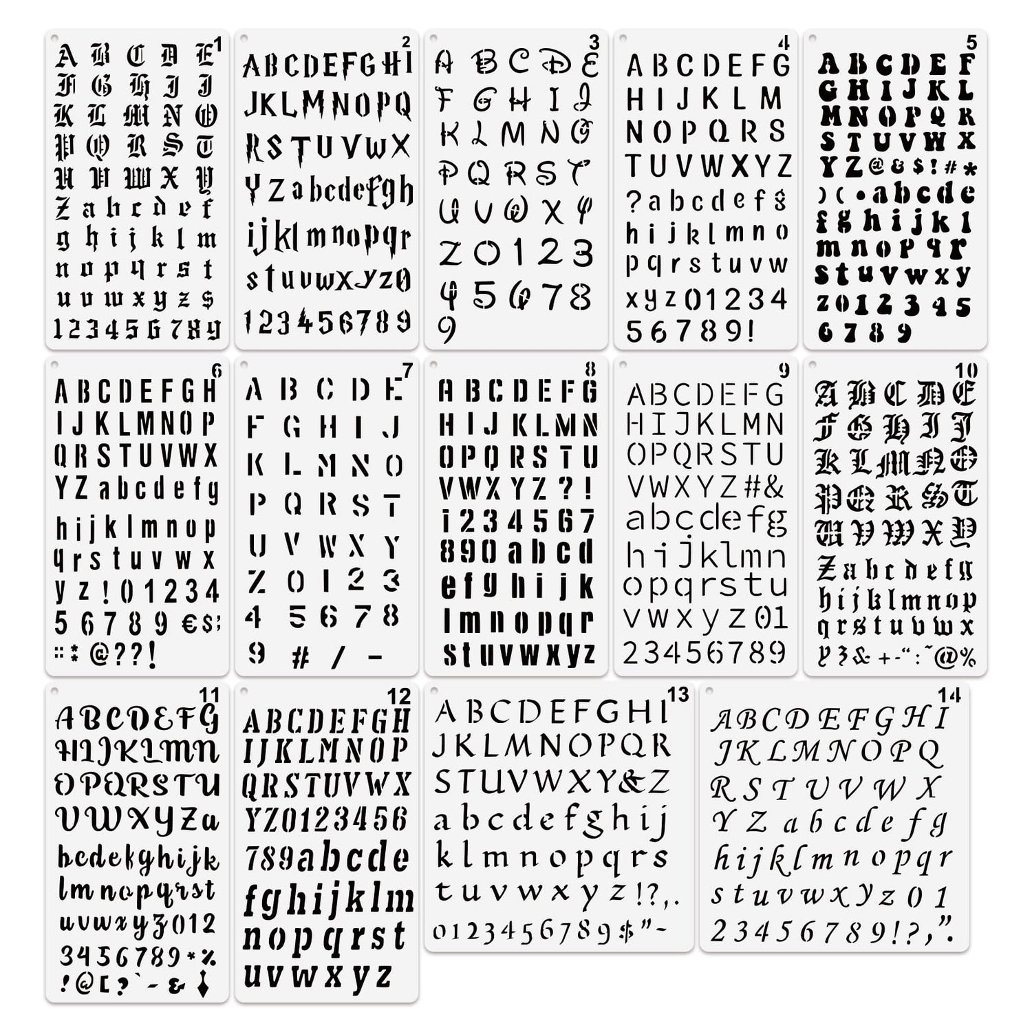 - What You Get: 1/2 inch small letter stencils for crafts reusable include 14 style small letter and number spray paint stencils with calligraphy number,old english lettering, font stencils. Rich drawing style to create any DIY art projects, share your creativity with friends and family.