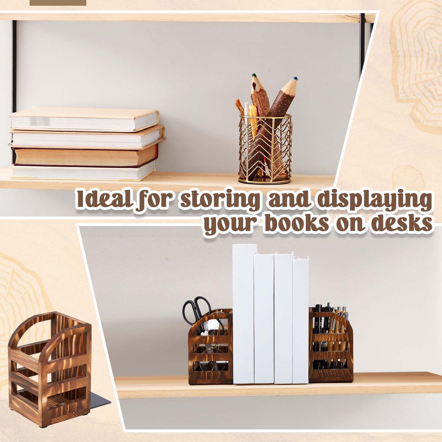 - Multiple Uses: our wood bookends are not only suitable for your books, magazines, and more, but can also be adopted to store movies, DVDs, and more; The pencil cups can also be utilized to hold scissors, pens and other office supplies
