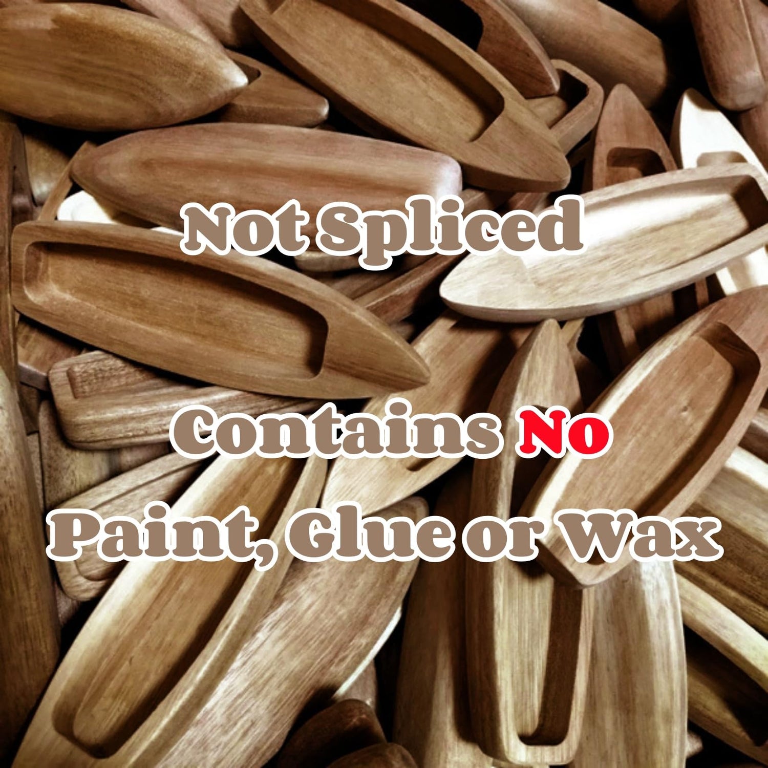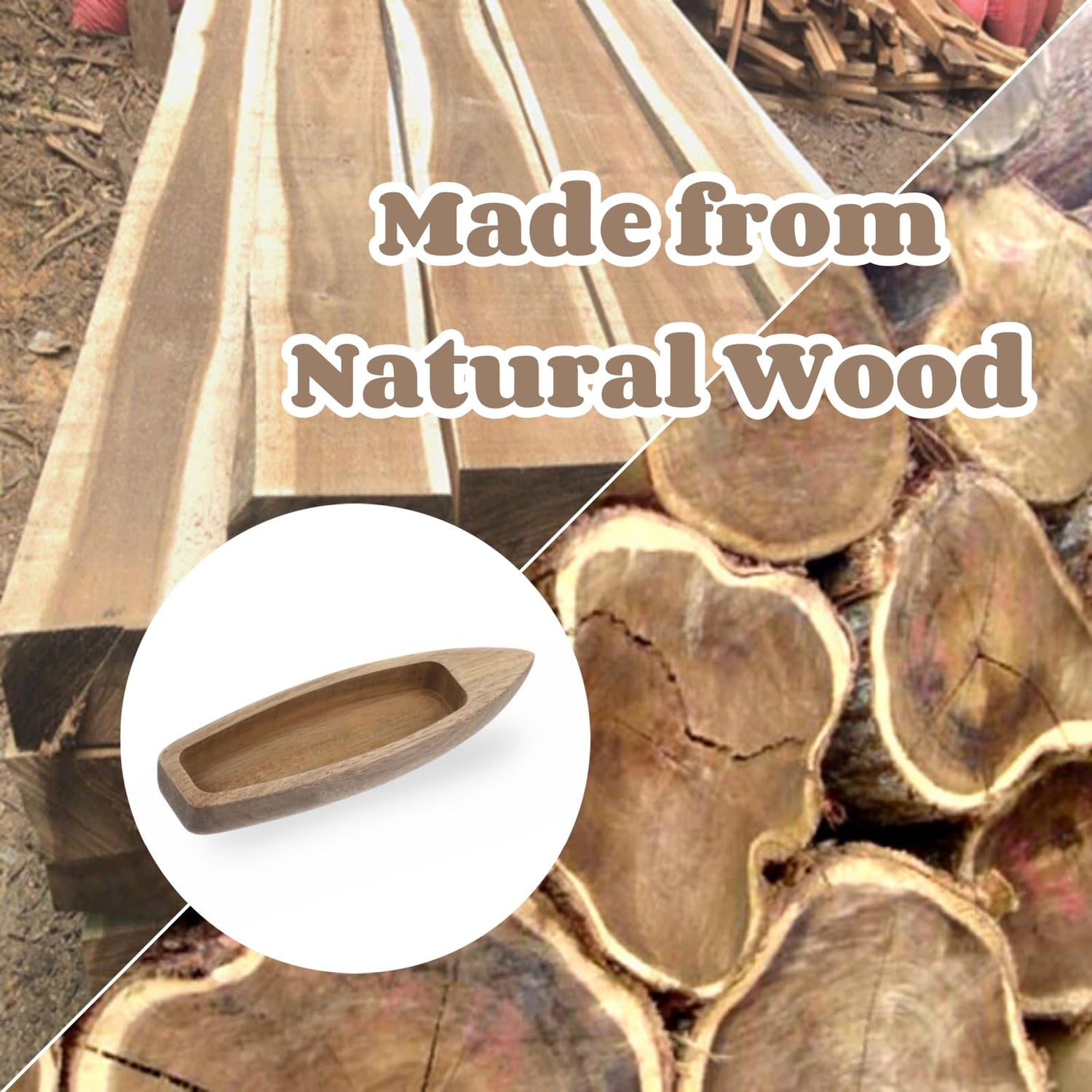 - Material: This wooden boat is made from a whole, all-natural log that has been cut and grooved. It is not spliced and contains no paint, glue or wax