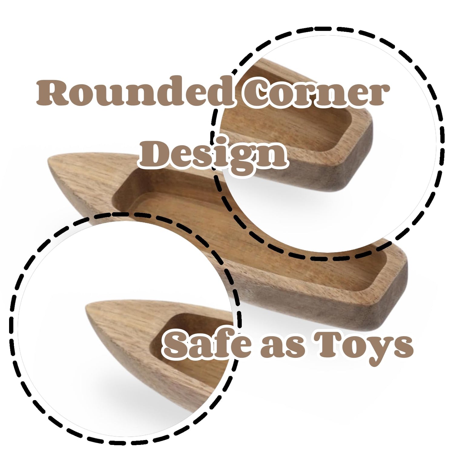 - Design: This boat toy has a simple and generous design, utilizing rounded corners. It is made of natural materials and retains the original wood grain for a rustic, beautiful look
