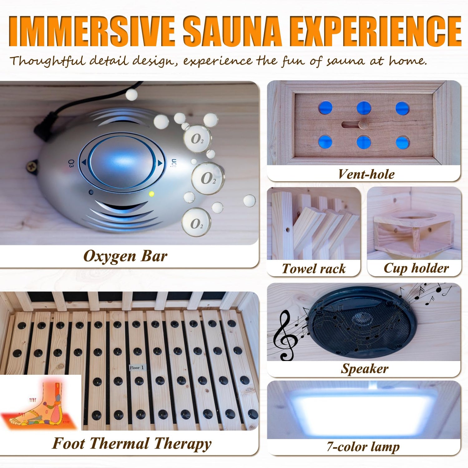 - ULTIMATE CONVENIENCE: Our sauna offers convenience. With a quick 10-minute warm-up time, you can enjoy the soothing benefits of infrared heat whenever you desire. Additionally, it is equipped with amenities such as 7 color therapy lights, an oxygen bar, cup holder, and LED reading light, ensuring a luxurious and comfortable sauna experience.