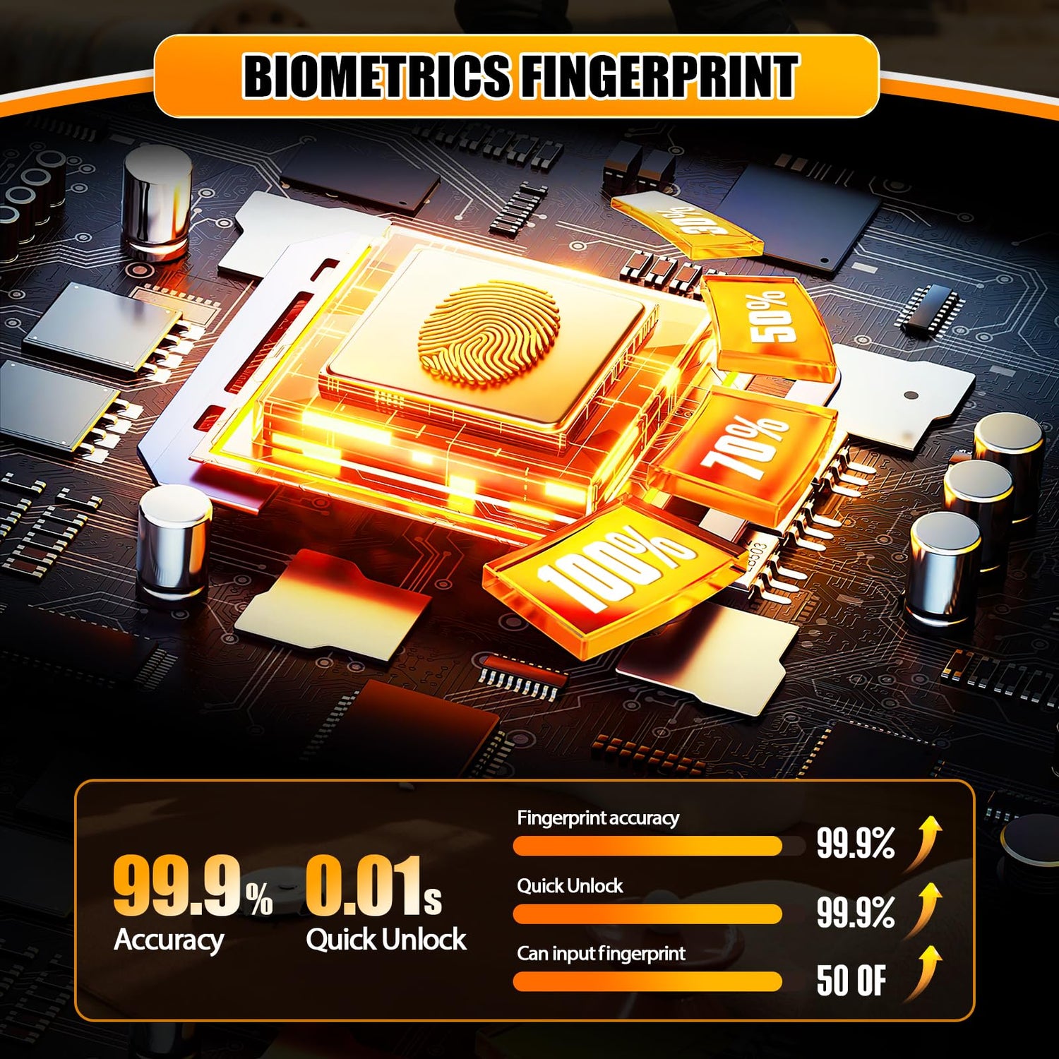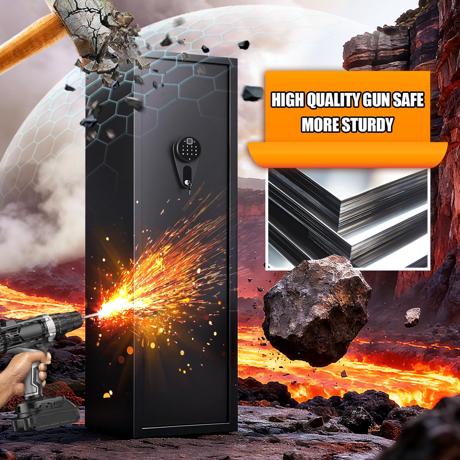 - 【Smart Unlock, Quick Access】This gun safe has three ways to unlock, password, fingerprint, and key. It also comes with a complimentary emergency unlock compartment. The lock cylinder uses a cutting-edge chip inside. Each gun cabinet has been tested by hundreds of unlocking tests, the fingerprint recognition accuracy is up to 99.99%, there will be no misplaced unrecognised phenomenon, more convenient access to your guns.