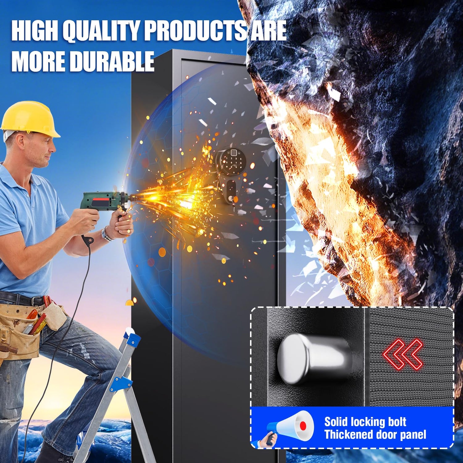- 【Extra-Large Gun Safe Storage Cabinet】 This gun safe is specifically designed for your rifles, pistols and shotguns. Constructed from high-strength metal, it offers greater stability and reliability compared to other lightweight models. Its user-friendly layout provides enhanced security for your cherished firearms alongside ample storage space. Our home rifle safe boasts a more robust construction and flexible space, adapting seamlessly to various settings such as studies, bedrooms, basements, garages, or storage rooms. It ensures your firearms are securely stored and neatly organised.