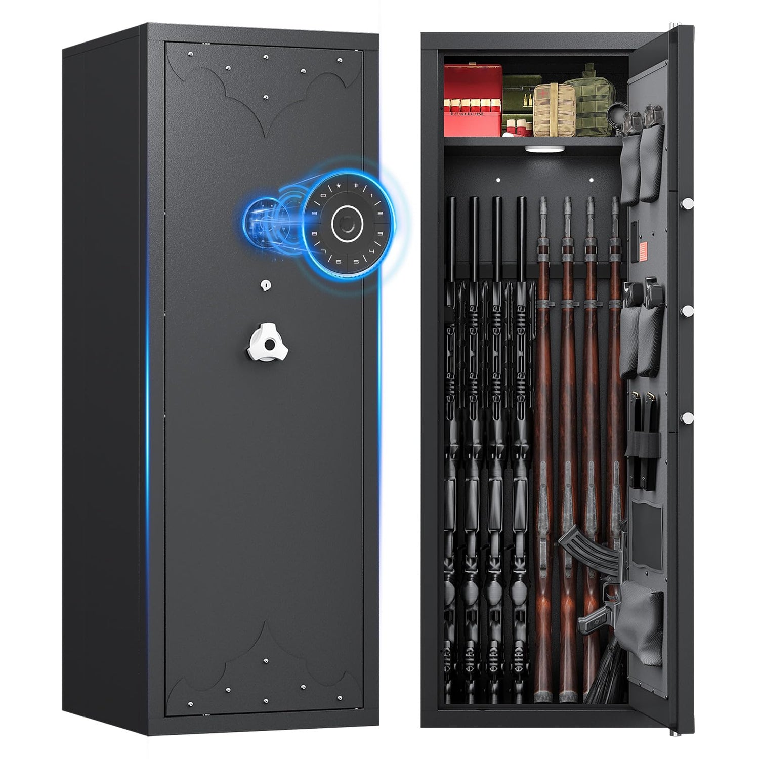 10-15 Gun Safe for Home, Large Capacity Rifle and Pistol Security Cabinet Quick Access Digital Keypad Lock, Backup Keys, Adjustable Shelves, Heavy Duty Steel Construction for Secure Firearms Storage