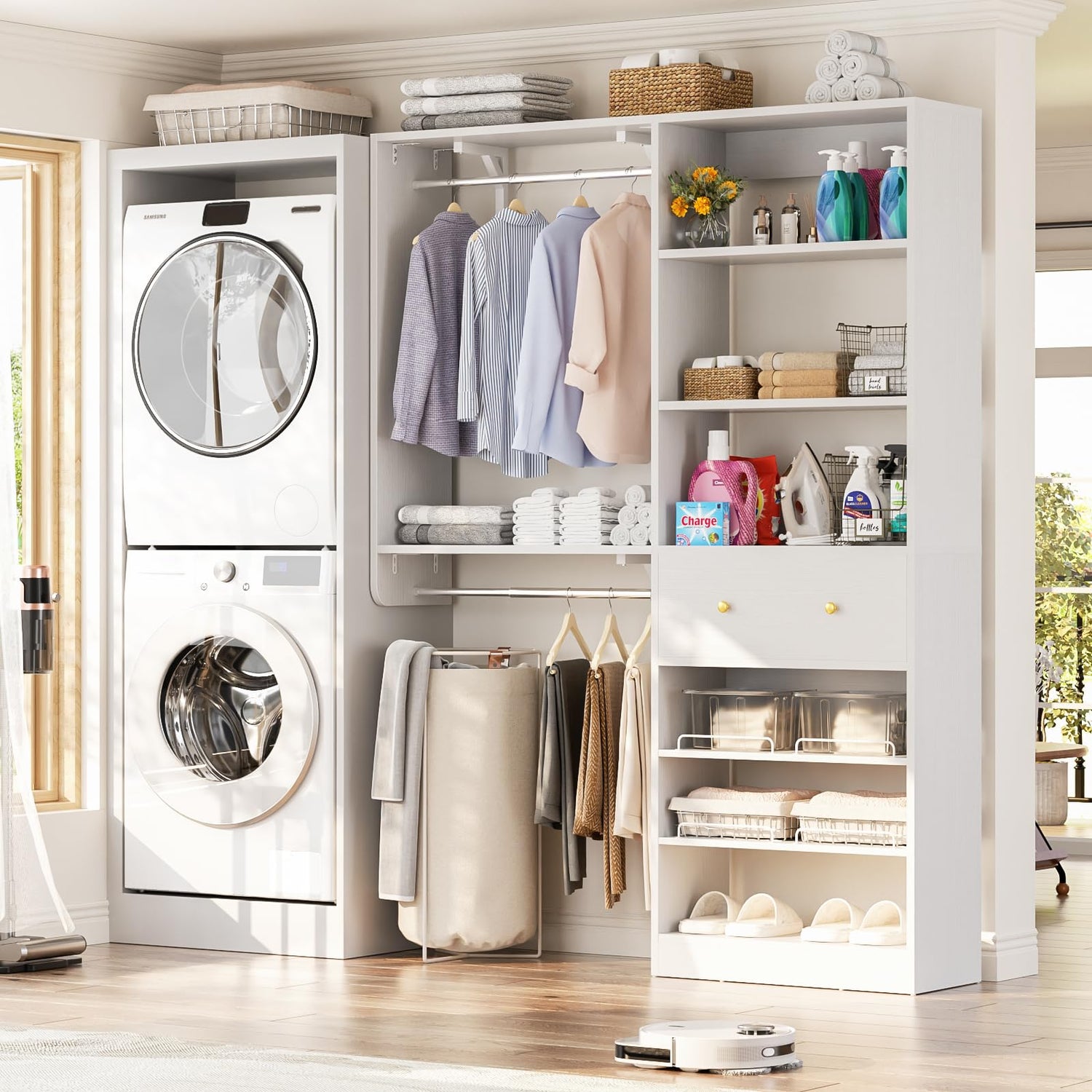 ![[10 FT Closet System] Reversible Set of 2 Wood Closet Organizer System with 2 Drawers, 4 Hanging Rods Adjustable Shelf, Walk In Closet Organizers with Shoe Rack, Garment Rack Clothes Rack, White Besiost](http://woodartsupply.com/cdn/shop/files/81lkxpmvj2L.jpg?v=1760850405&width=1214)
