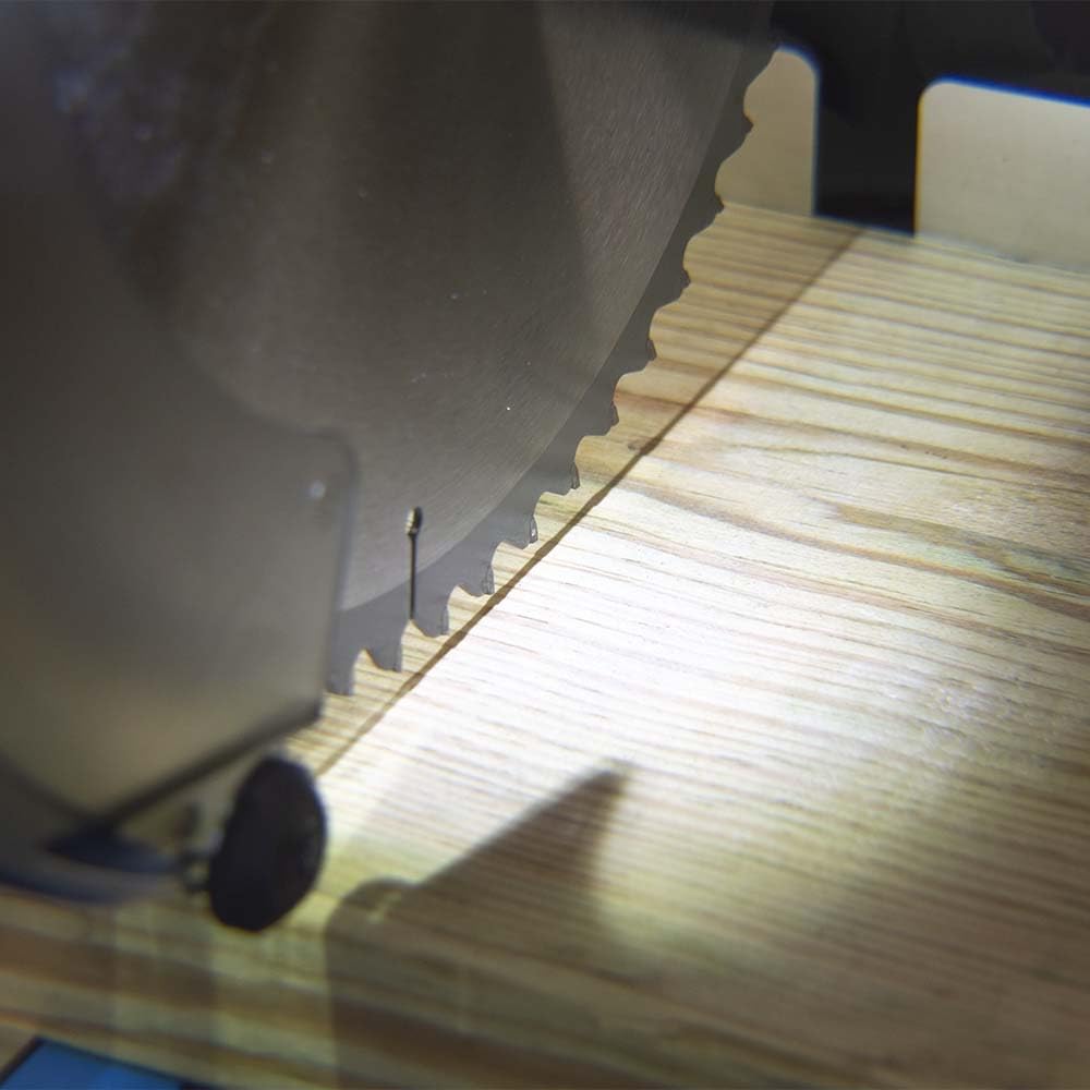 - Shadow guide cutting line projects a consistent and accurate cutting line on your work piece