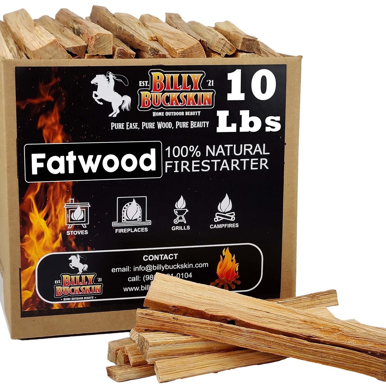 - BURNS IN ALL WEATHER – Count on Billy Buckskin fatwood to spark a fire in any weather. With an exceptionally high resin content, these fatwood sticks ignite easily—even when wet—making them the dependable choice for every setting. Whether you’re lighting a cozy campfire in snowy conditions or firing up the grill in summer heat, Billy Buckskin fatwood delivers consistent, reliable performance. Embrace fire-starting confidence in all seasons with Billy Buckskin.