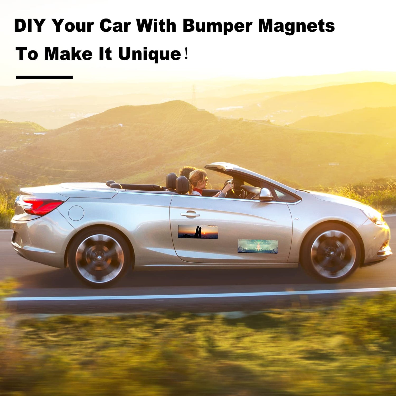10 Pack 12" X 4" Bumper Sticker Magnets with Self Adhesive Flexible Magnetic Bumper Stickers, Turn Any Decal Into a Strong Magnet, Easy to Cut