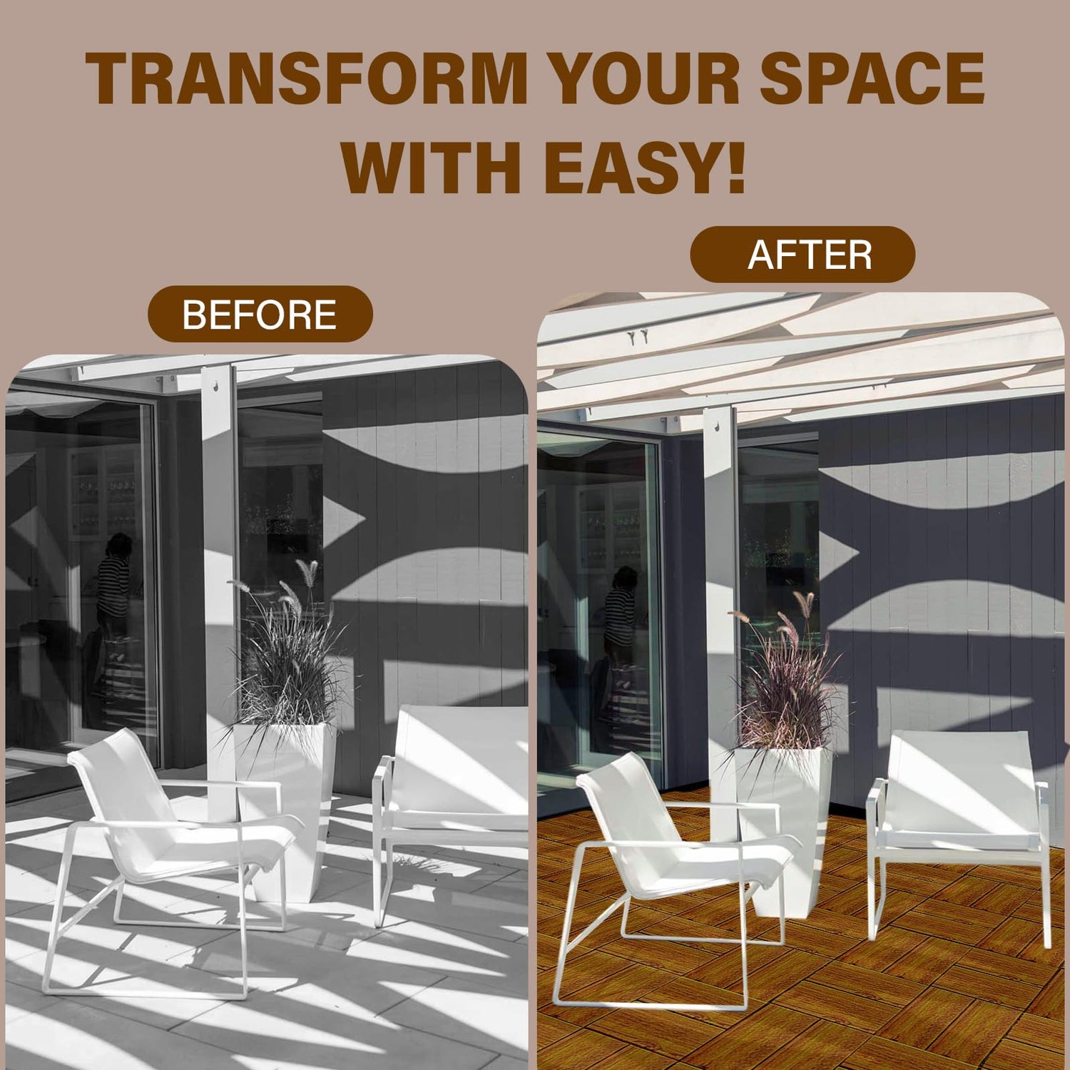 - 🌍【Perfect for Any Space – Indoor & Outdoor Use on Any Surface】Suitable for concrete, grass, sand, and more. Ideal for balconies, patios, decks, poolside areas, gardens, porches, pathways, outdoor restaurants, and more. Elevate your space with a natural, elegant wood finish.