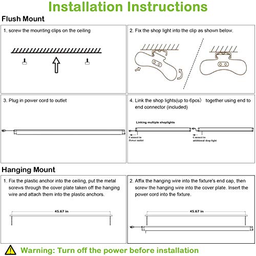 - ✅ Linkable - 4ft linkable led shop light use plug connection to connect up to 4 pcs together in your garages, workshops, workbench areas, storage areas, warehouses, basements, equipment rooms, etc.