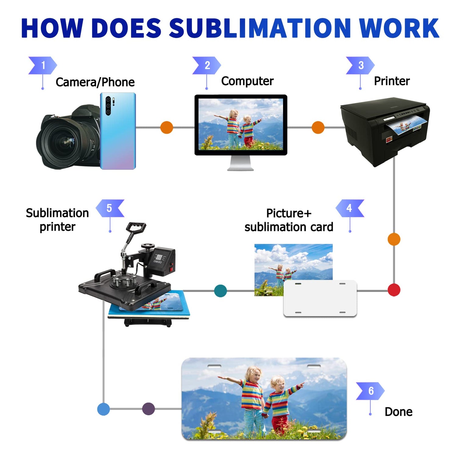 - DIY FUNCTION: The aluminum car license plate adopts the dye-sublimation technology, which can directly print the pattern to the metal part on the back of the shell, with a gloss that is not easy to fade. (Note:Only white is coated The surface can be sublimated) A practical gift for your loved one. The temperature setting is recommended to be 180°C, which is about 354°F, and the sublimation time is recommended to be 60~120 seconds. Please remove the protective film before operation