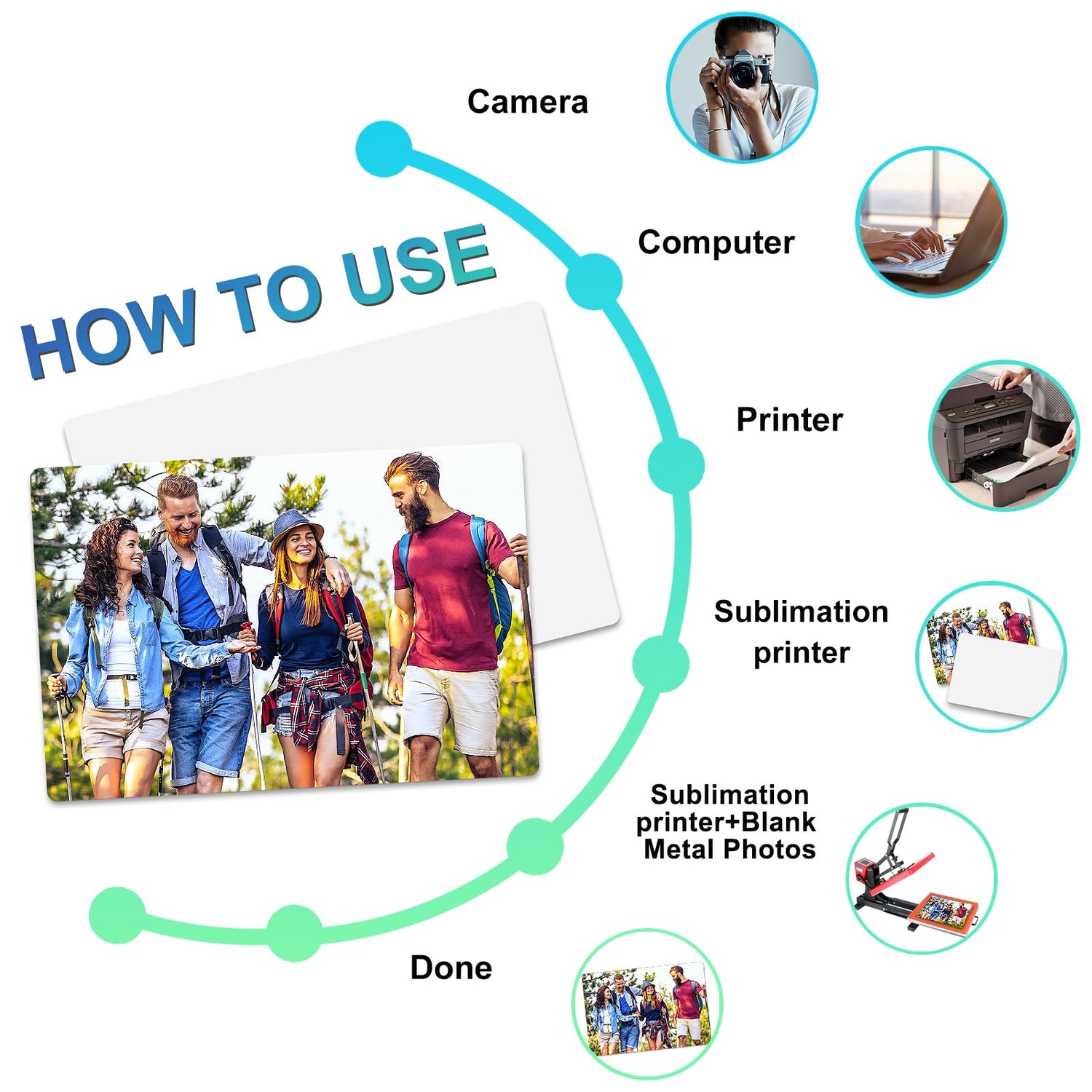 - Easy To Use : This aluminum metal photo blank needs to remove the protective film before sublimation; The temperature setting is recommended to be 180°C, which is about 354°F, and the sublimation time is recommended to be 60~120 seconds