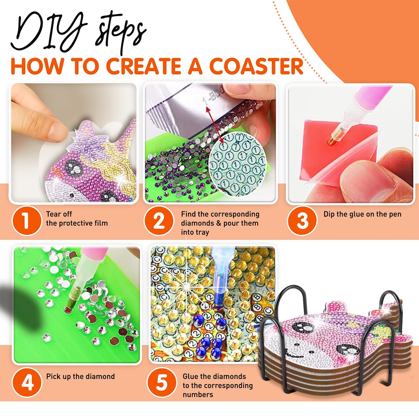 - Ideal Gift: Our Unicorn diamond painting coasters with holder make an ideal gift for DIY craft enthusiasts. The DIY diamond art coasters kit can be given to your family and friends on birthdays, Christmas, and it is suitable for both children and adults.