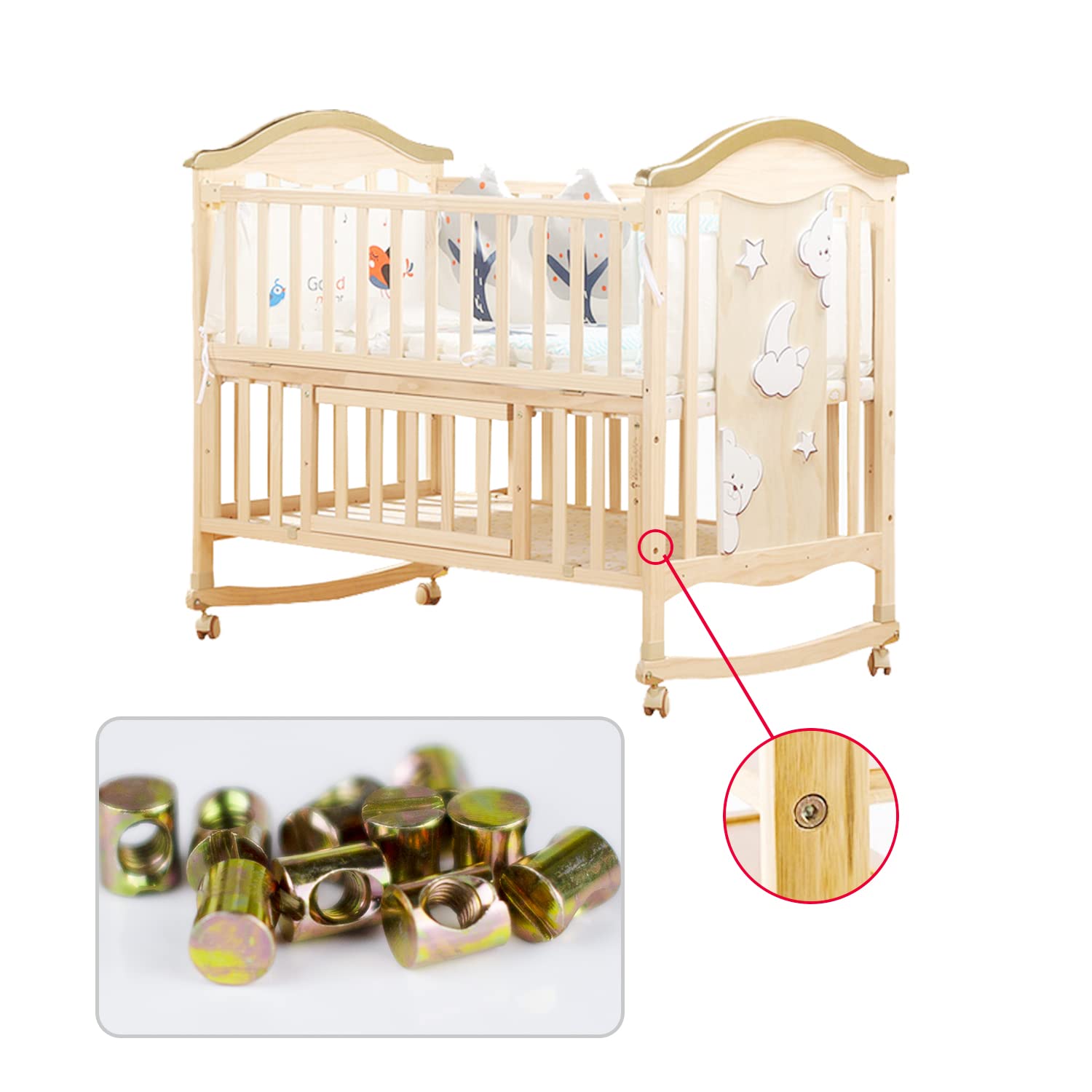 Details: Metric M6 Barrel Nuts Baby Bed Crib Screws Hardware Replacement Kit