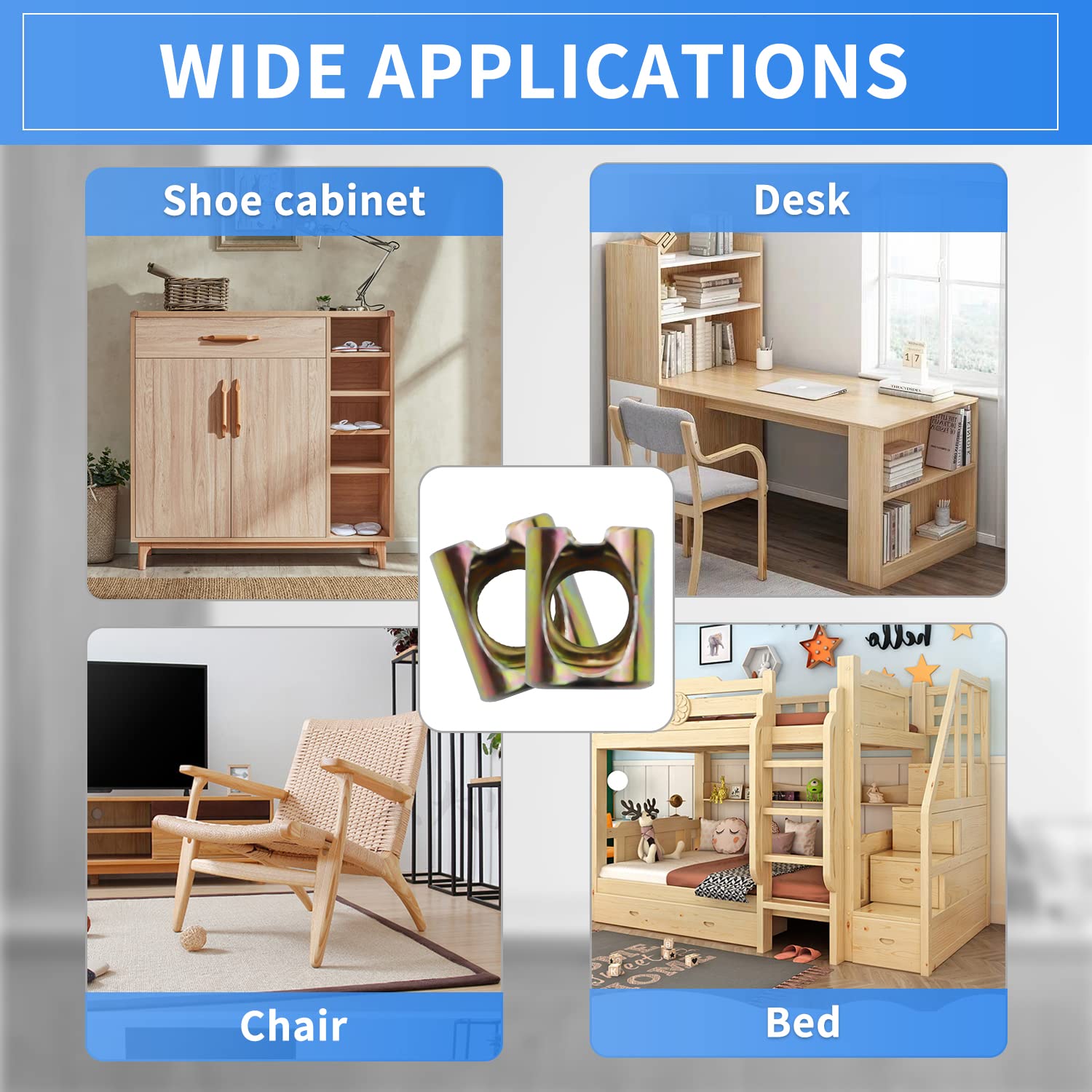- APPLICATION: Widely used in the assembly of most beds, cribs and flat furniture,also work well in joining wood, boards, kitchen cupboard.etc