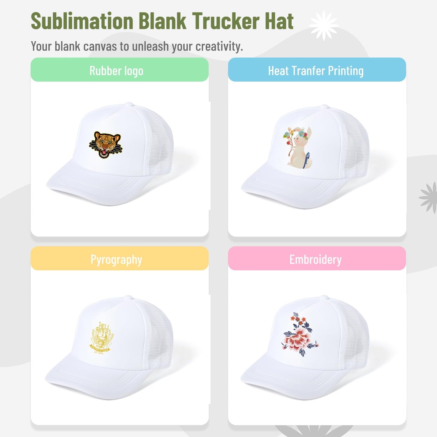 - 10 Pack WHITE Blank Baseball Caps: Our trucker hats come with 10 pieces. With an assortment like this, you can have more than enough at your fingertips to cater to your daily style and outfits. Never run out easily with our 10 expertly crafted hats