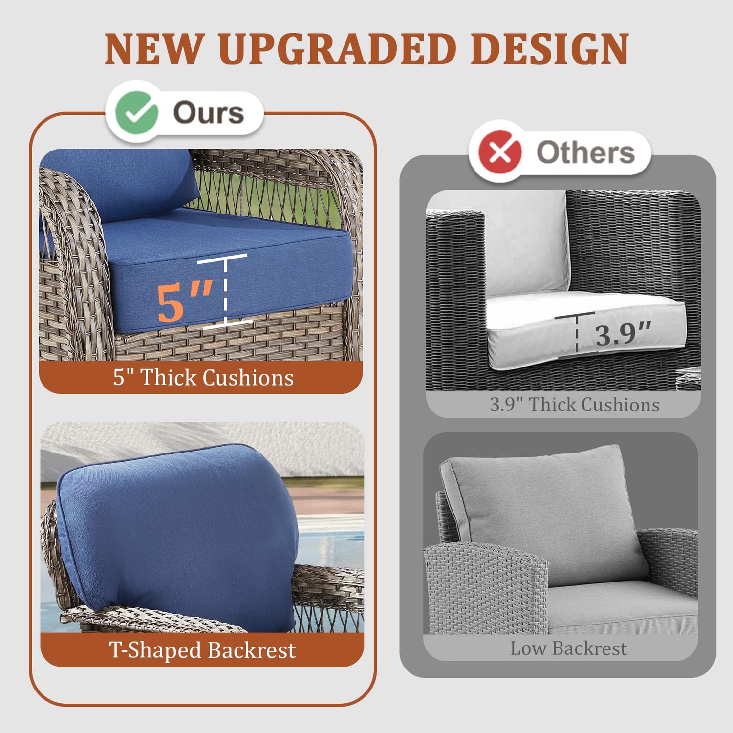 - 5" Ultra-Thick Cushions for Deep Comfort: Sink into our 24" deep seat cushions filled with high-density 28D foam for the perfect balance of softness and support. The 5-inch thickness ensures long-lasting shape and comfort, whether you're lounging for hours or entertaining guests outdoors