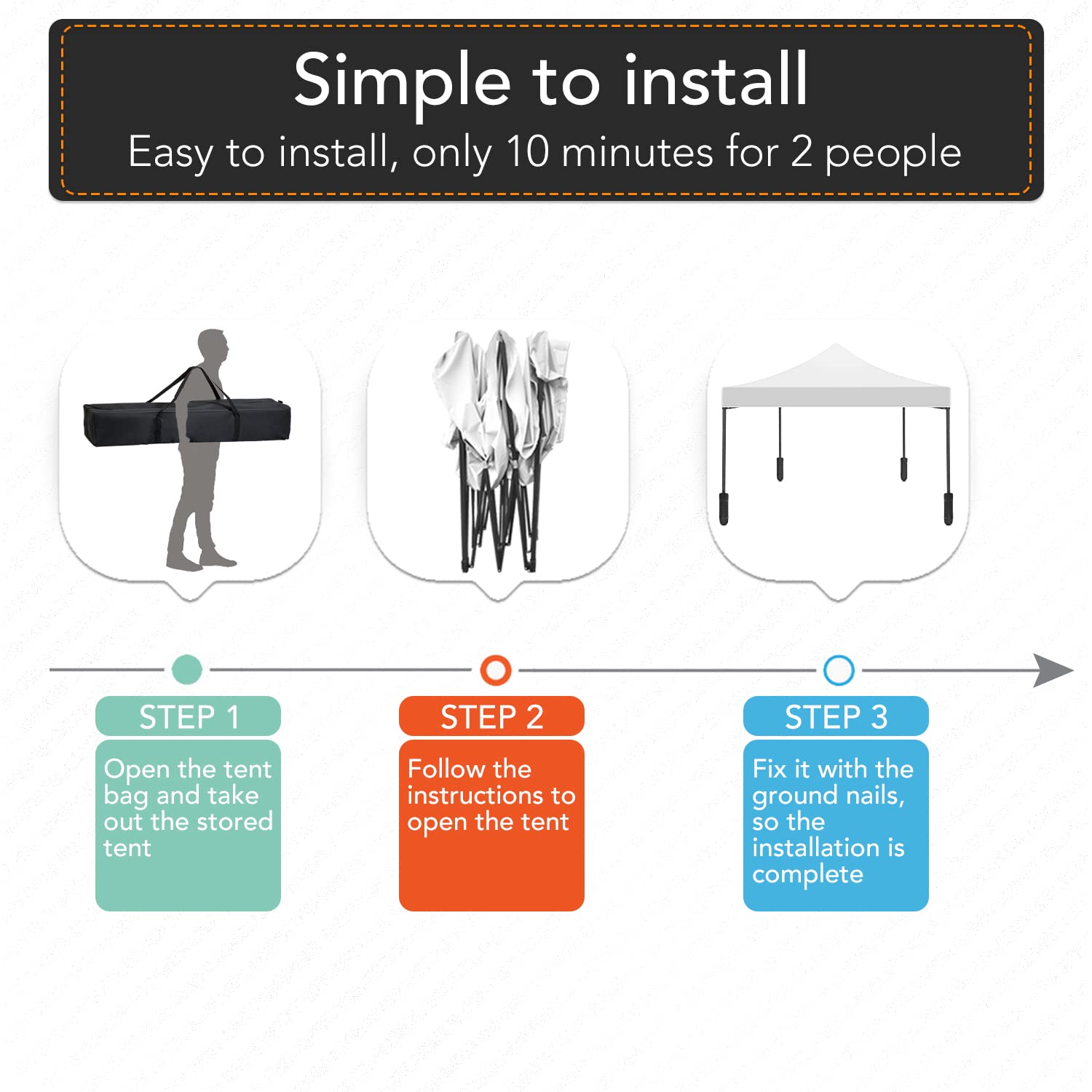 - 💧[Easy To Carry] - The Pop up canopy coming with a carrying bag, reinforced base plate and heavy-duty zipper and rubber handle. You can easily carry the canopy tent by transported by hand or by car.