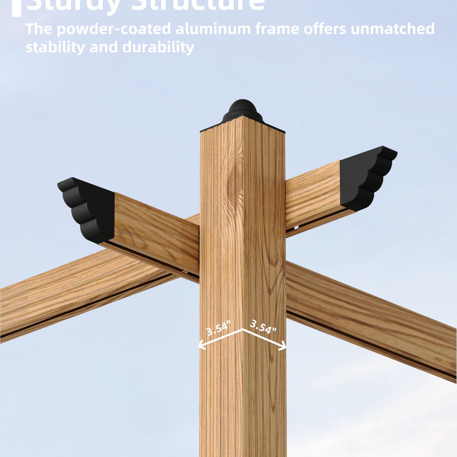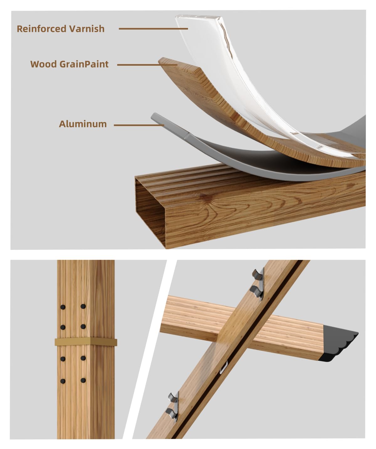 - Modern Wood-Look Design - The wood-grain design seamlessly blends into any outdoor space, such as backyards, decks, patios, or gardens. A 10x13 ft pergola not only expands your outdoor living area but also adds a touch of elegance.