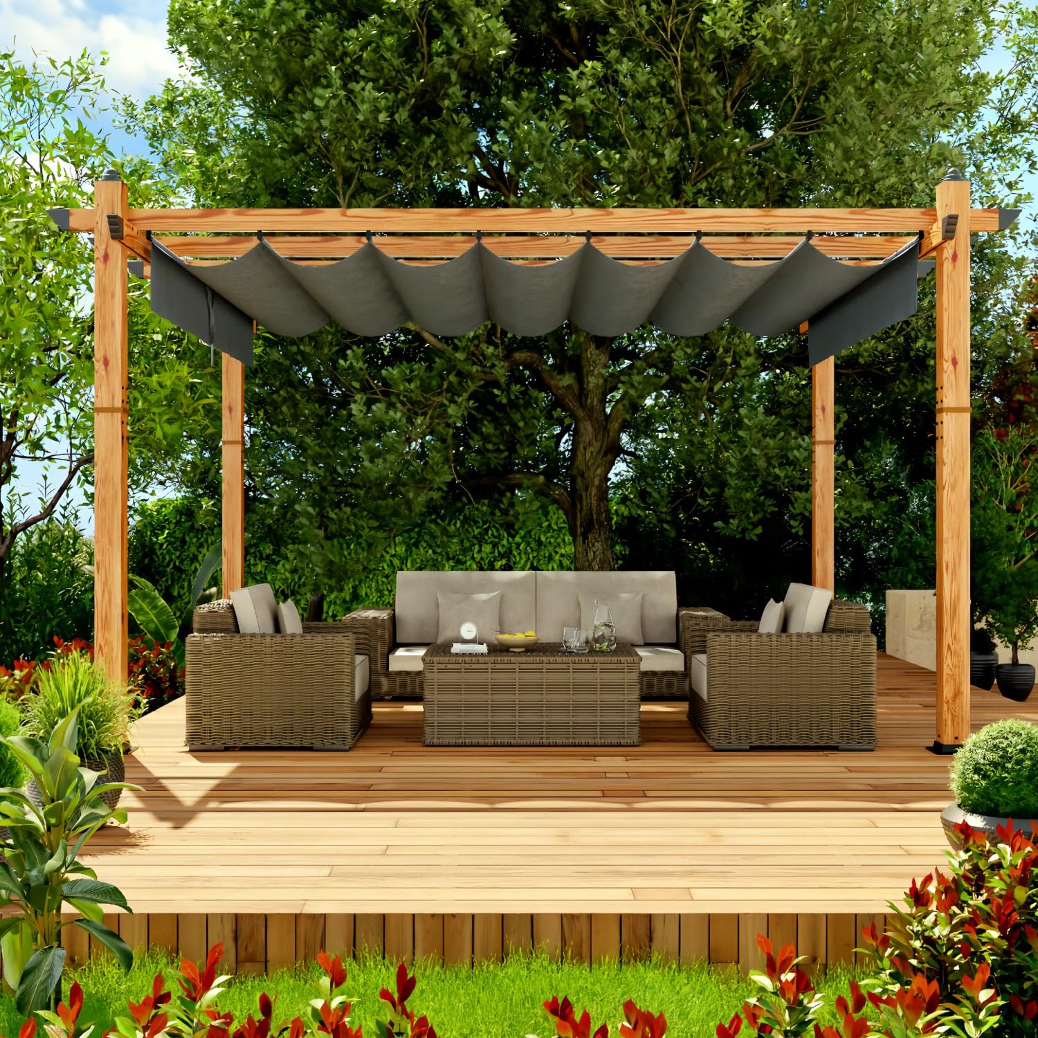 10' X 13' Outdoor Pergola with Retractable Canopy Aluminum Pergola Faux Wood Metal Pergolas Gazebo for Backyard, Deck, Patio, Garden Porch Beach Sun Shade Pavilion Grape Trellis Grill, Gray