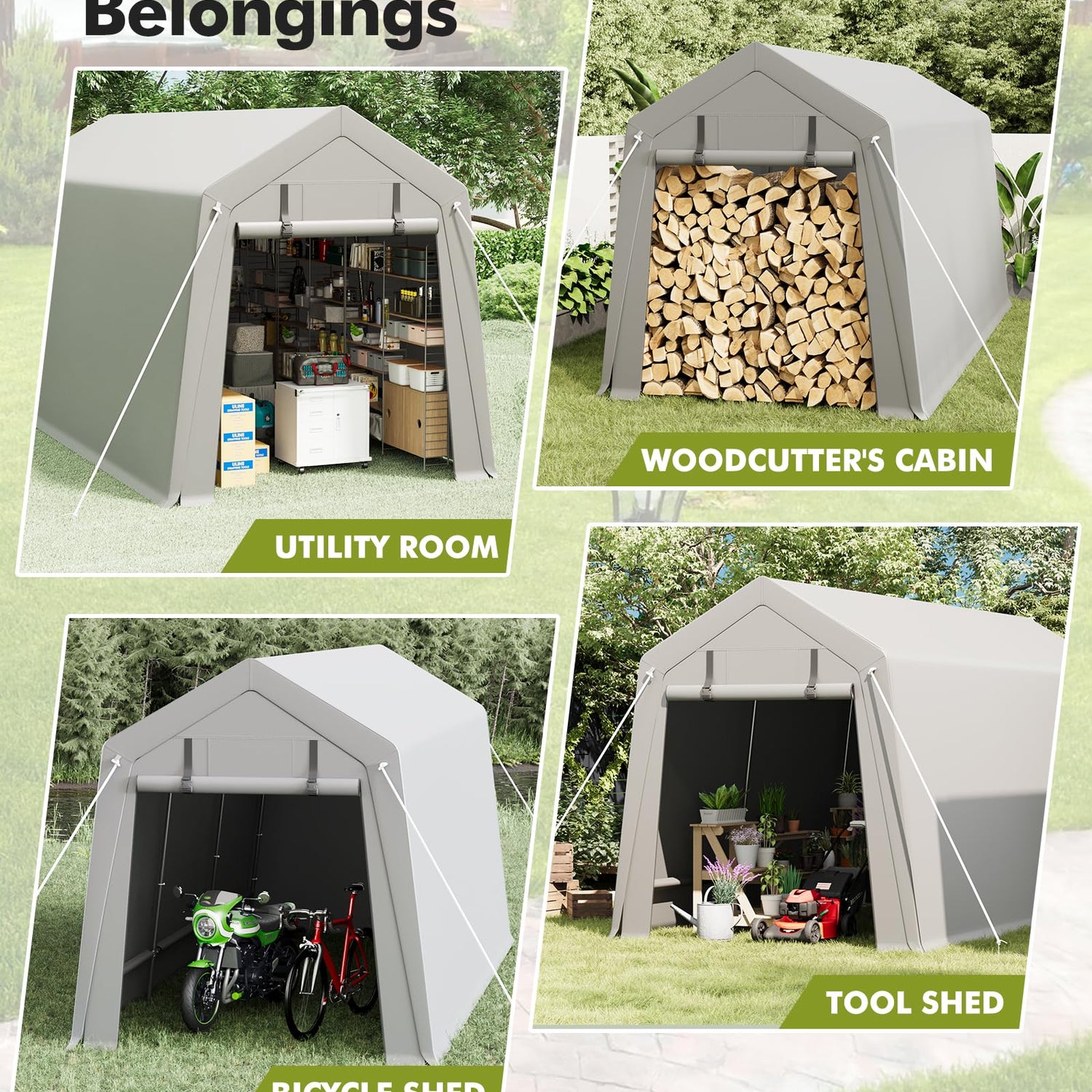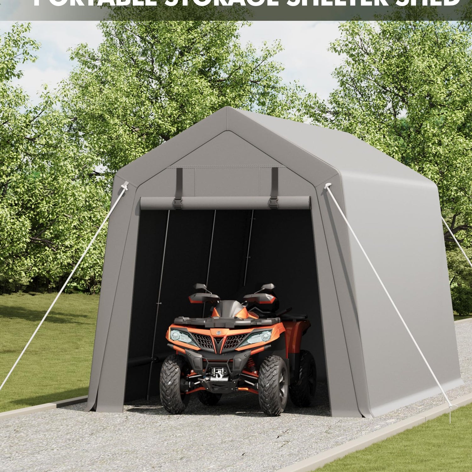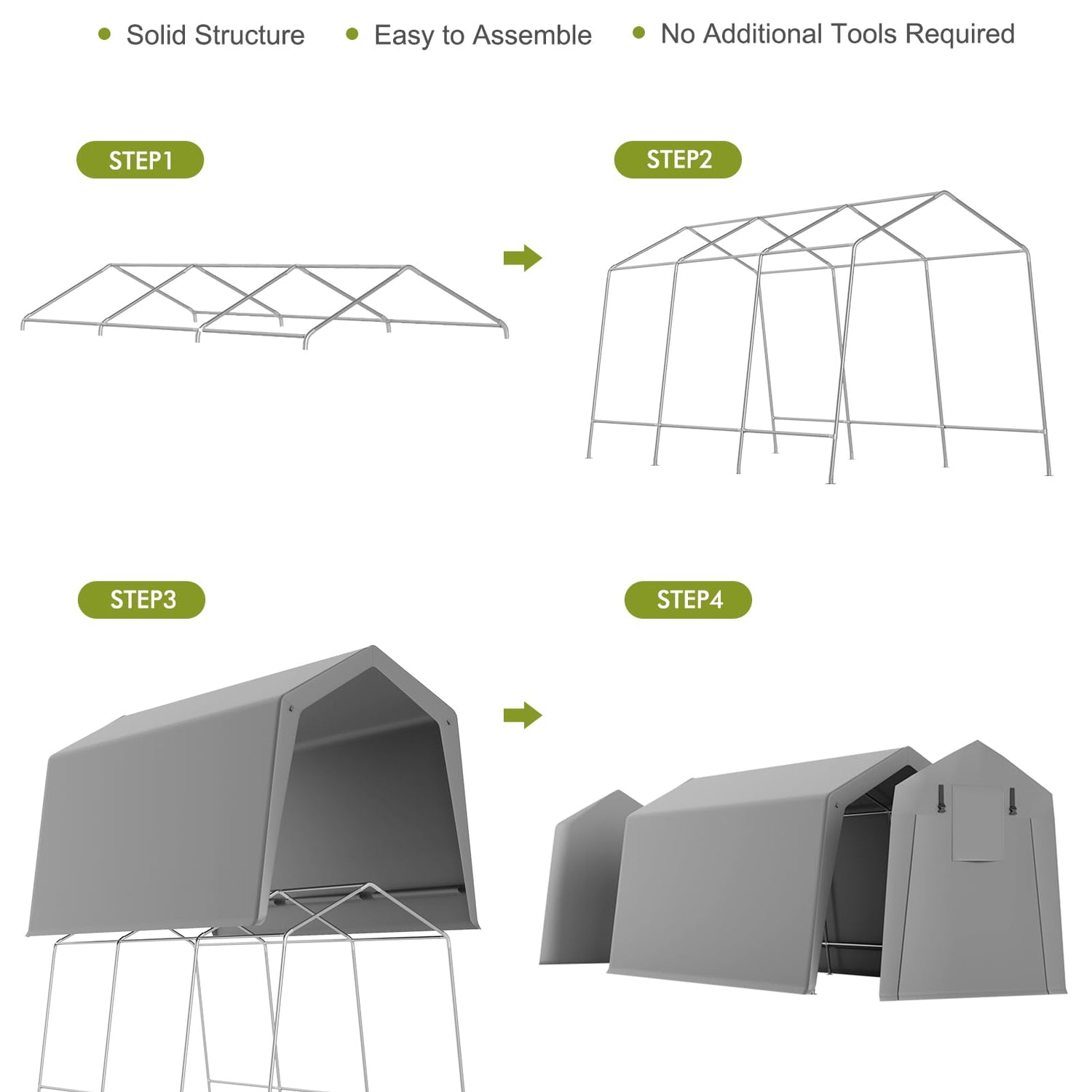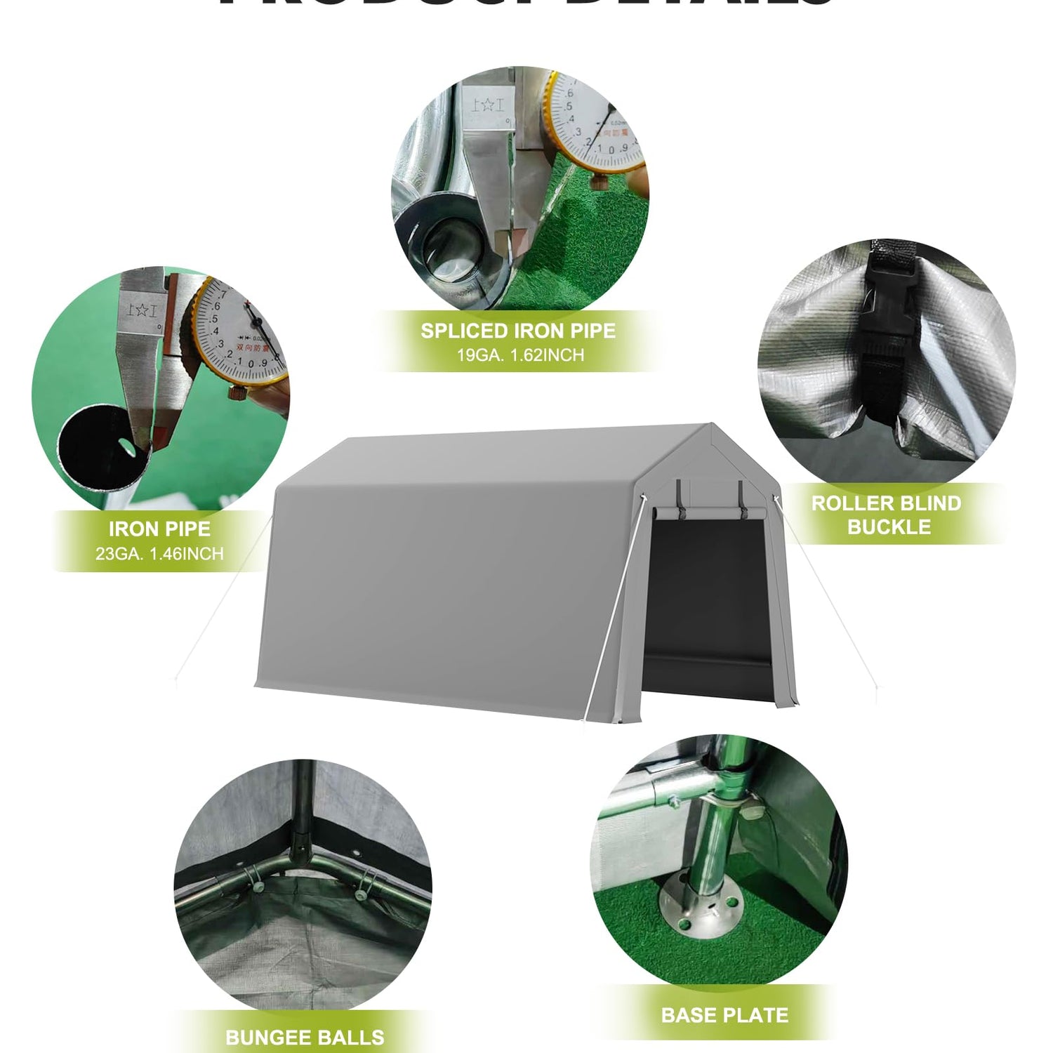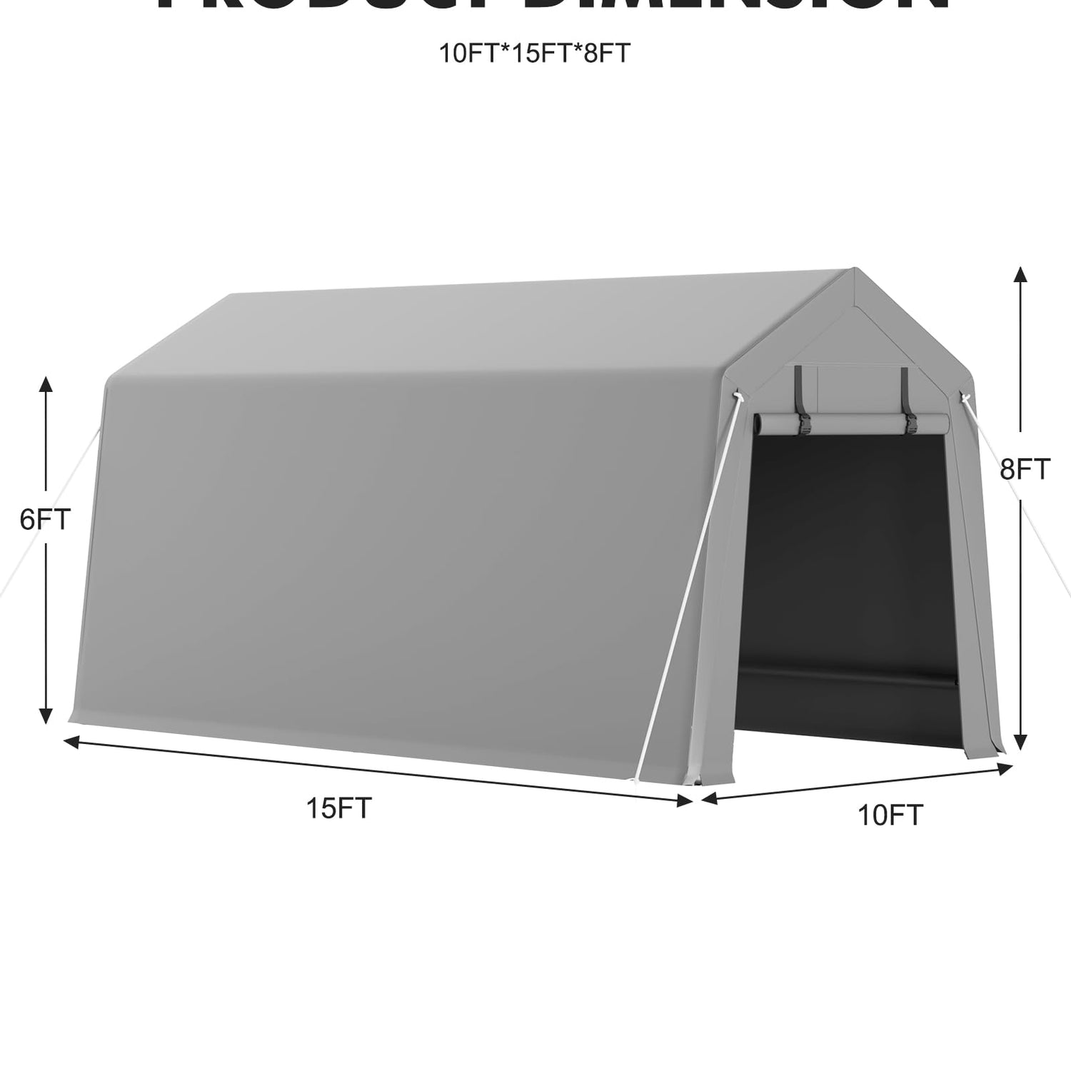 10 x 15 ft Portable Carport, Storage Shed with Heavy Duty Waterproof Tarp & 2 Roll-Up Zipper Doors, Ideal Tent for Motorcycles, Bikes, Garden Tools, and Firewood