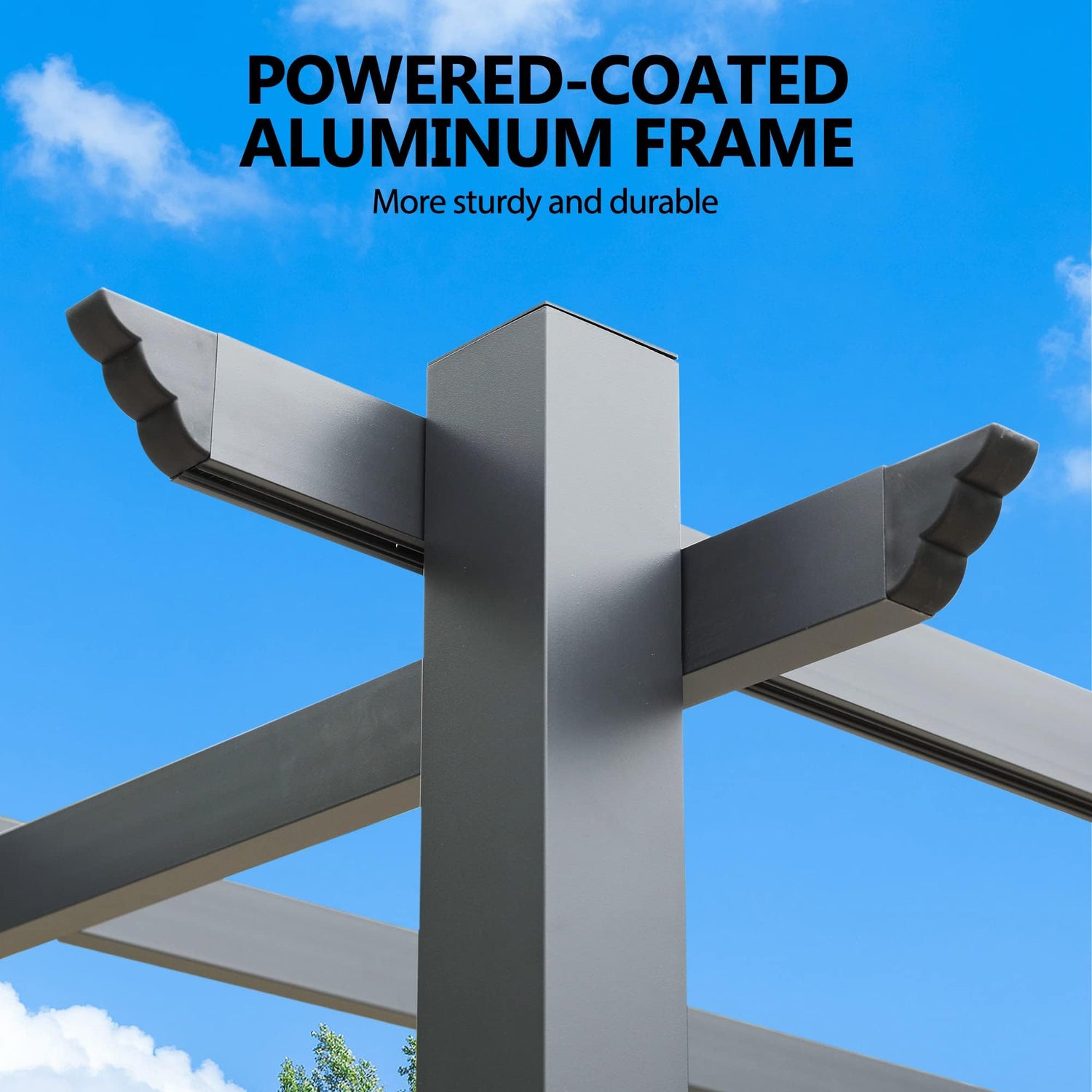 - UPGRADED METAL FRAME - Made with a sturdy, extra-large aluminum frame, this pergola is designed to withstand the elements and provide a durable structure for your outdoor space and stronger than most outdoor pergolas on the market. It helps the pergola to be more stable and better face the wind and sun. Ground stakes (included) help you secure the pergola install to the dirt ground.