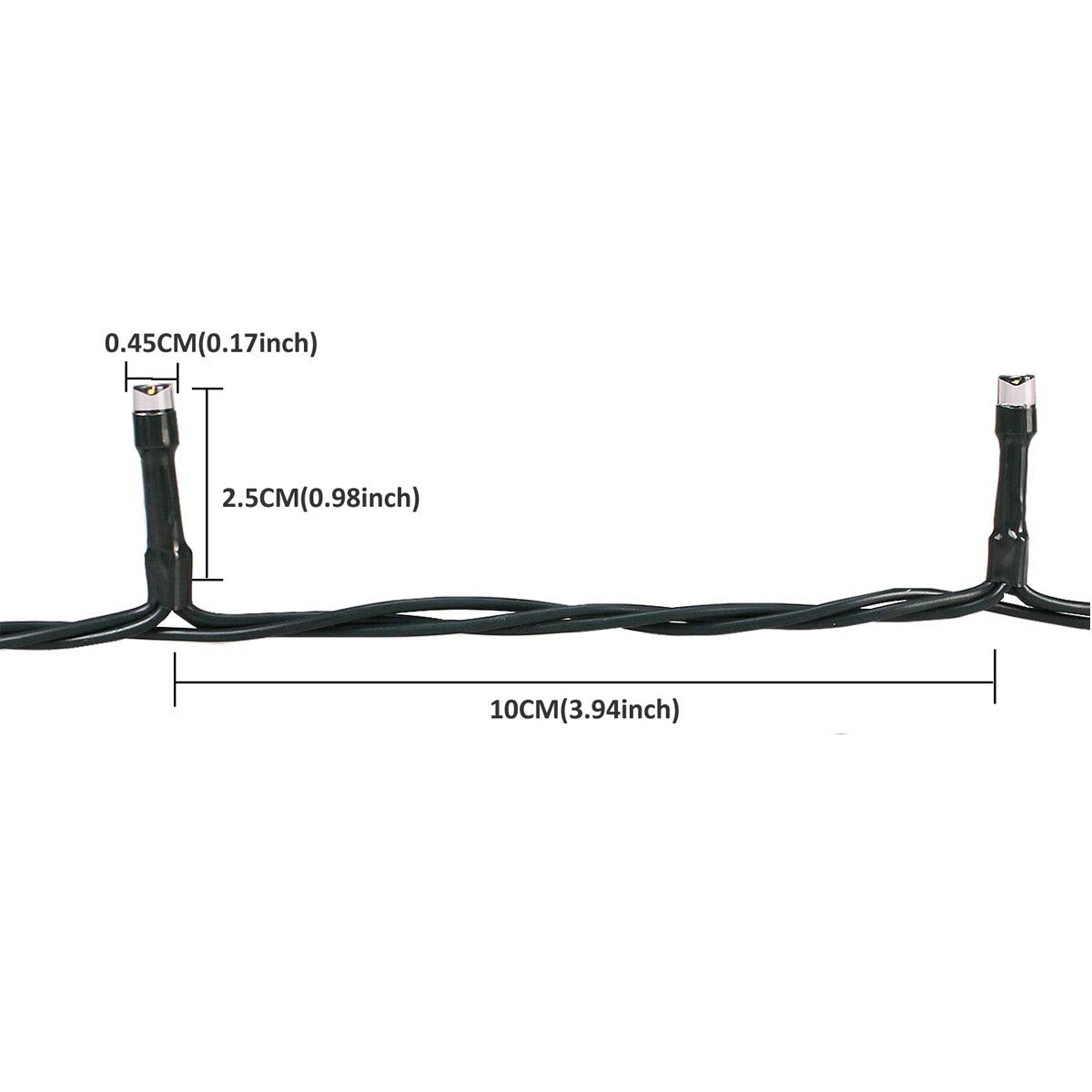 Details: Introduction: Your holiday decorating will be so much easier this year by our fairy Lights. These gorgeous fairy lights come with an indoor transformer adapter which takes the output voltage down to 30 volts and makes them really safe around your home.The light with Memory Function, it can remember the last setting that you choose when you turn on the power again. 9.8ft (3m) of the distance from adapter to first LED bulb, long enough to find the best position for your decorating. Our fairy lights look beautiful in trees at Christmas or wonderful for garden party, wedding, birthday party and BBQ in evenings. Specification: Light Color: Warm White LED Bulbs: 500 LEDs Cable Color: Dark Green String Length: 173ft (53m) The distance from Transformer to First LED Bulb: 9.8ft (3m) LED Space: 3.9in (10cm) Electronic Transformer Power: 6W Input Voltage: 120V~, Output Voltage: 30V-8 Light Effect : 1. Combination; 2. In waves; 3. Sequential; 4. Slo-Glo; 5. Chasing/Flash; 6. Slow fade; 7. Twinkle/Flash; 8. Steady on. Please Note: IP44 Rainproof: protested against water sprayed in any direction; Notice that It CAN NOT be used in heavy rain or underwater Package: 1 x String Lights1 x transformer 1 x User's Manual