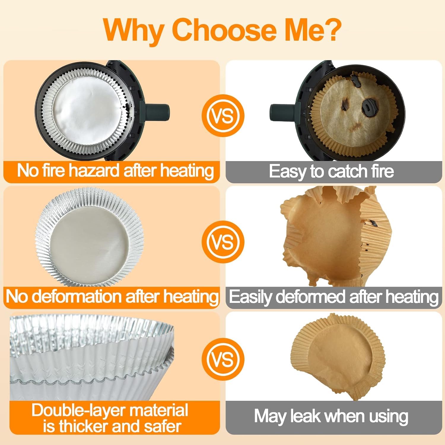 • 【New Upgrade Materials】:Our Air Fryer Liner is made of high quality aluminum foil. So our product is more heat resistant than the parchment air fryer liner. It can withstand high temperatures of up to 600°C. No fire hazard and not easy to deform.