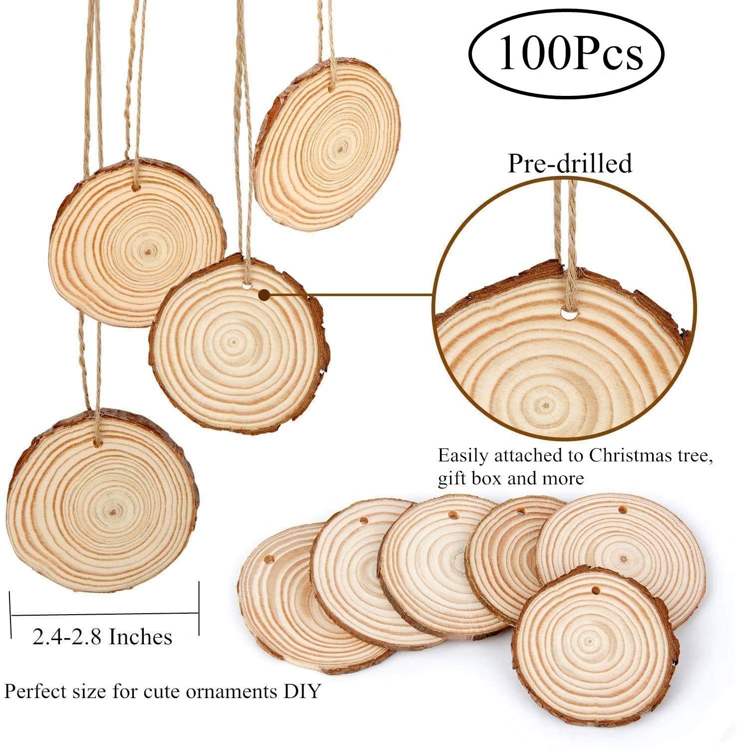 100 Pieces 2.4"-2.8" Natural Wooden Slices, Colovis Unfinished Wood Circles with Holes Tree Bark Round Log Discs DIY Crafts Hanging Ornaments (2.4"-2.8" 100Pcs, Natural)