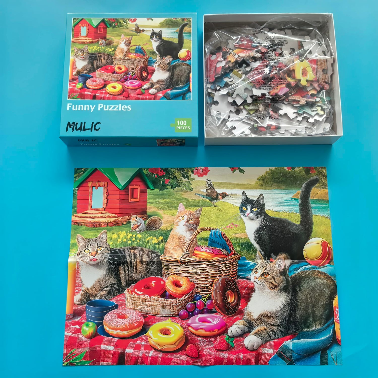 100 Pieces Jigsaw Puzzles for Adults - Cat Puzzles for Kids Ages 6-8 8-10 10-12 - Picnic Kittens and Donuts