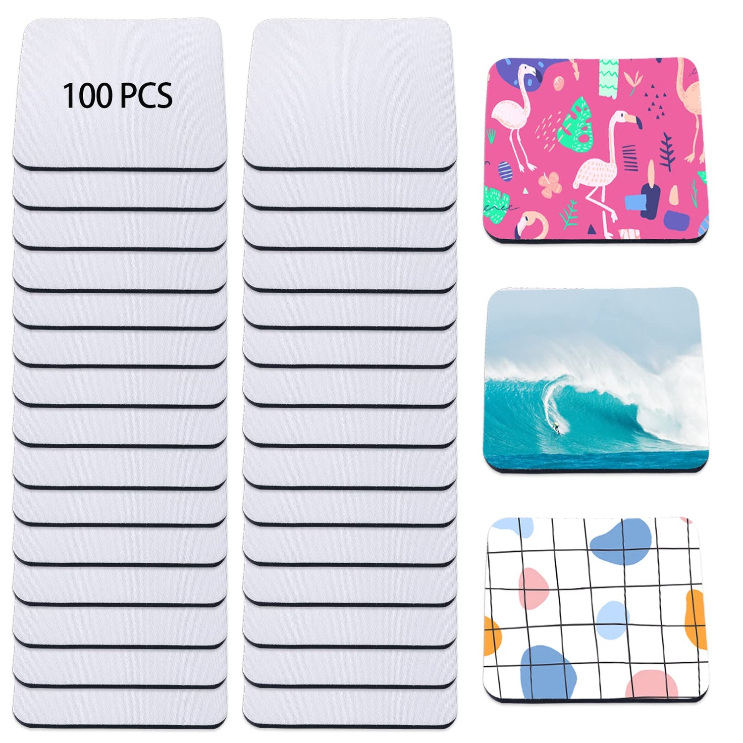100 Pieces Sublimation Blank Cup Coasters Bulk Square Blank Cup Mat Rubber for Sublimation Transfer Heat Press Printing DIY Crafts 3.93 x 3.93 Inch