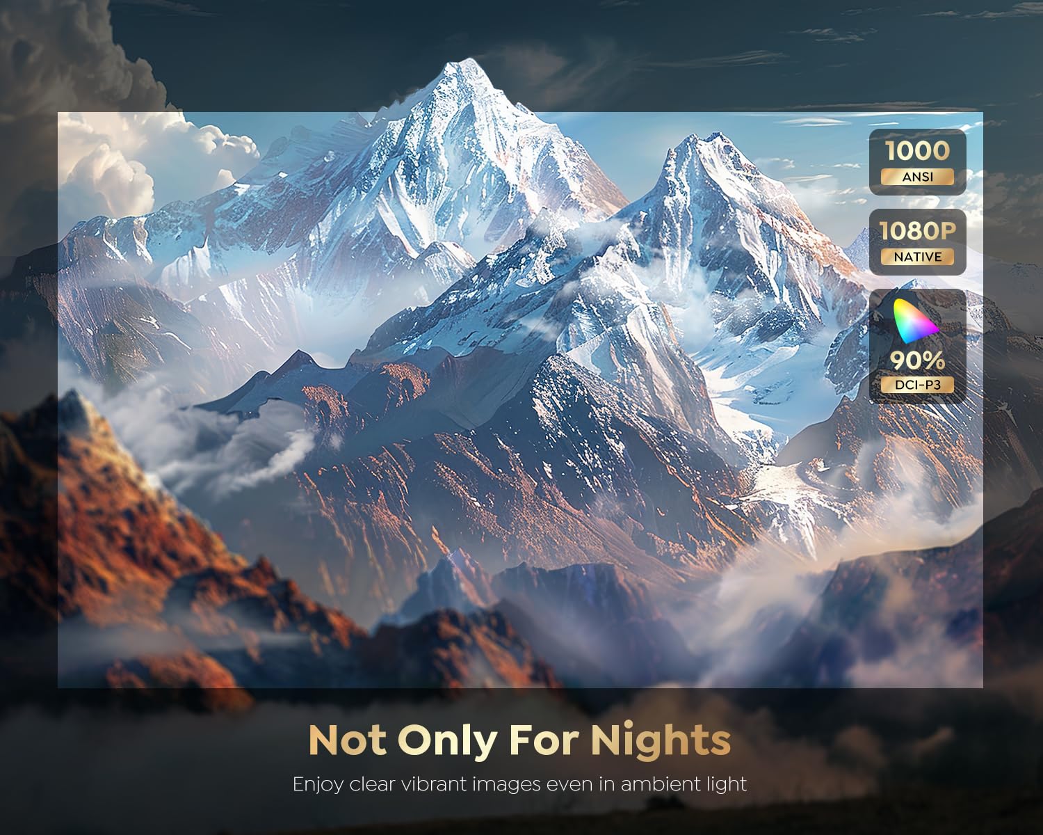 - 💎[1000 ANSI Lumens & Native 1080P Resolution, 4K Support] Higher brightness than typical 1080P projectors. Not just for nighttime—enjoy clear images even in ambient light. Whether you need a projector for movie watching or presentations and meetings, K12 movie projector is the perfect choice. Precision glass lenses ensure even image distribution, eliminating edge blur and enhancing clarity and color richness. Ideal for both indoor and outdoor use.(Note: Videos labeled as 4K will display at a native resolution of 1080P, often termed '4K supported')