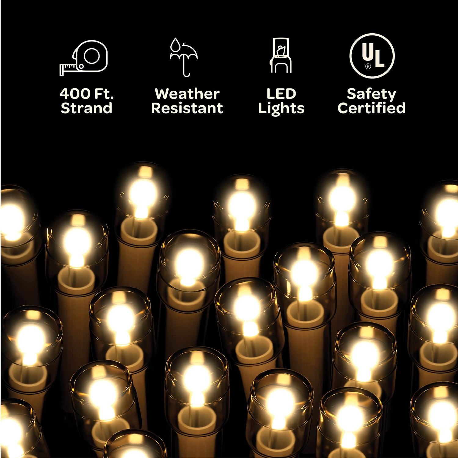 1000 LED Christmas Lights [Warm-White] 400ft Super Long String Lights - Remote with 8 Modes/Timer/dimmable - UL Approved for Indoor/Outdoor Use - For Holiday/Christmas/Party/Decorations (clear wire)