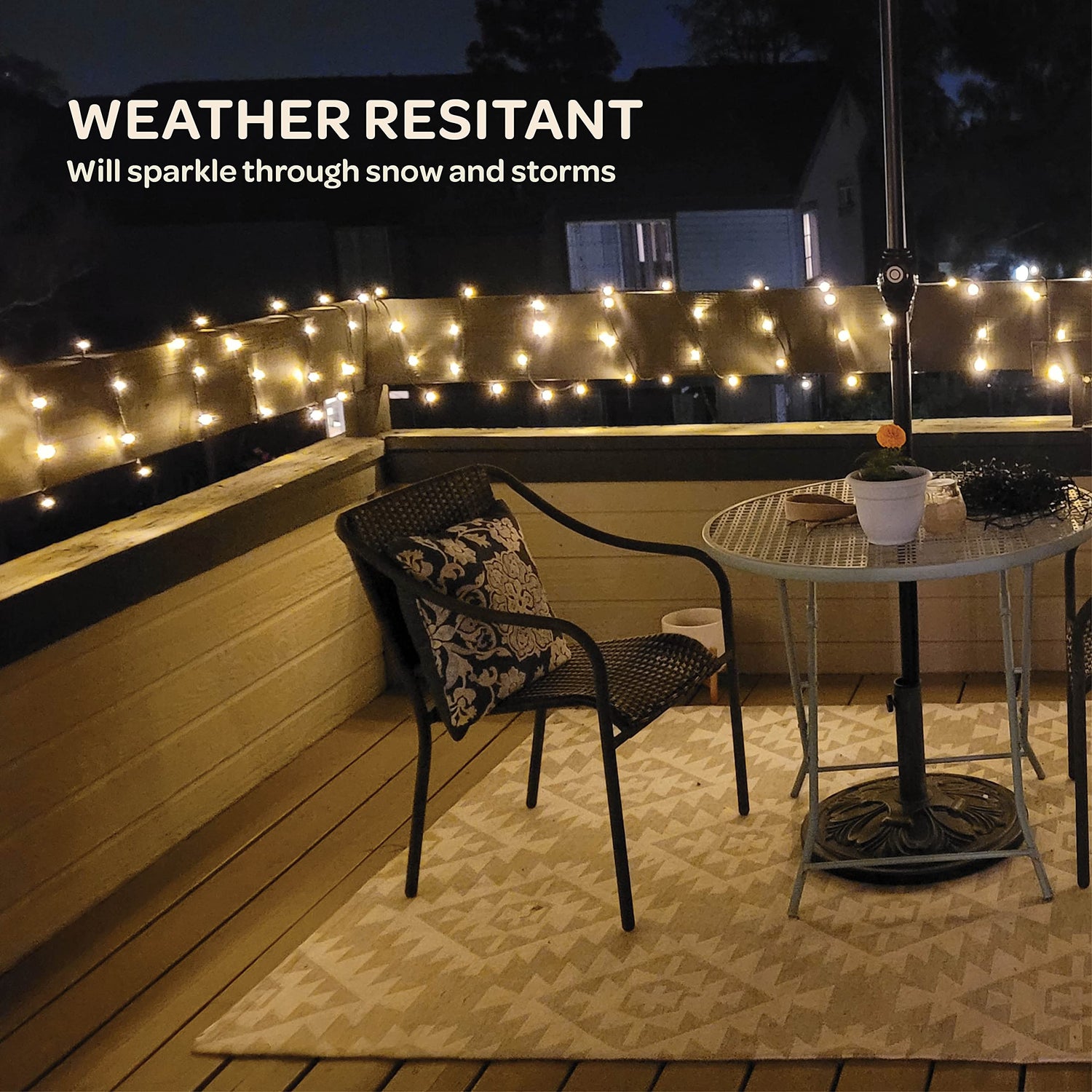 - WATERPROOF: UL-listed Lights are not affected by heavy rainfall, sleet, snow, or extreme temperatures. outdoor christmas lights keep glowing through storms and rainbows. Please note that the plug is not waterproof.