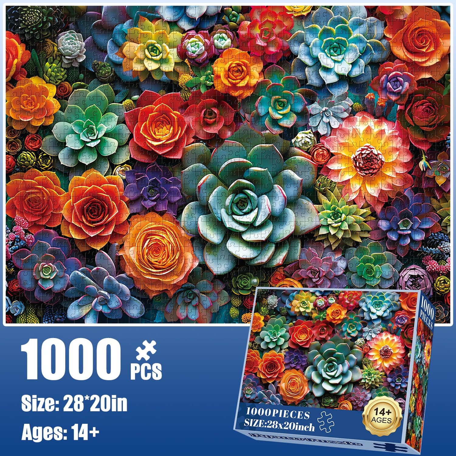 1000 Piece Puzzle for Adults - Colourful Flowers & Succulent Plants Puzzle for Adults Children - Recycled Paper Jigsaw Puzzle 1000 Pieces - Fun and Challenging Family Game Great Gift Idea, 28 * 20 in