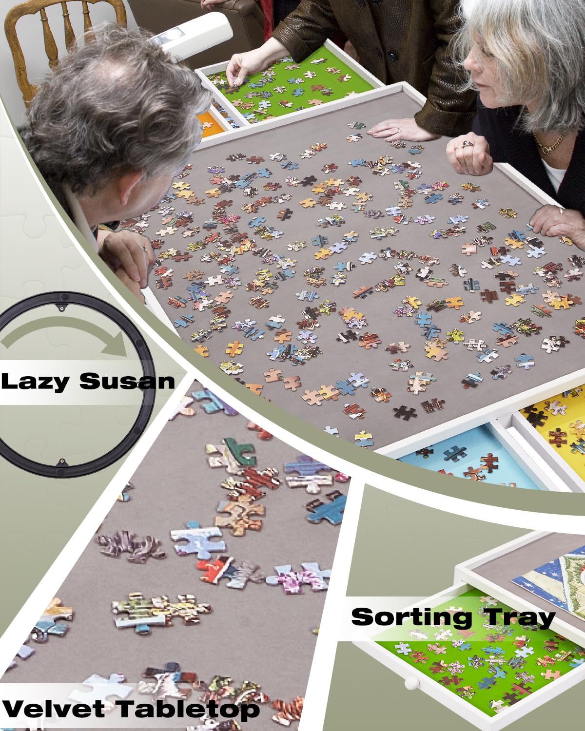 - Rotating Lazy Susan Design: The spinning table allows effortless puzzle-solving by rotating smoothly to reach any section with ease. Equipped with a ball-bearing swivel system, it ensures steady, smooth rotation for an enjoyable, hassle-free experience