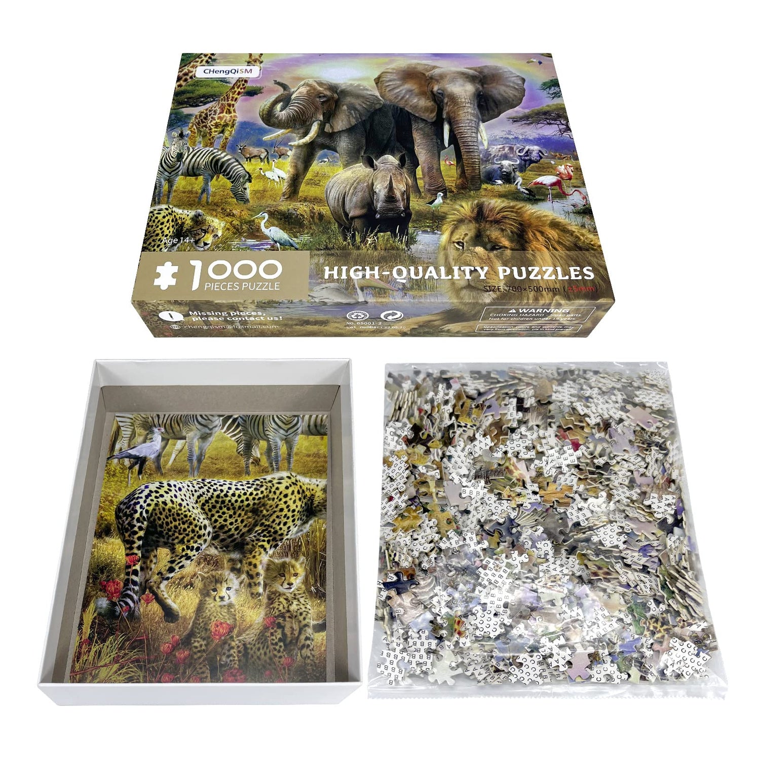1000 Pieces African Animal Puzzles Jungle Scene African Beasts Elephant Jigsaw Puzzle for Adults Animal World Jigsaw Puzzles Home Decoration School Supplies Jigsaw Puzzles 1000 Pieces for Adults