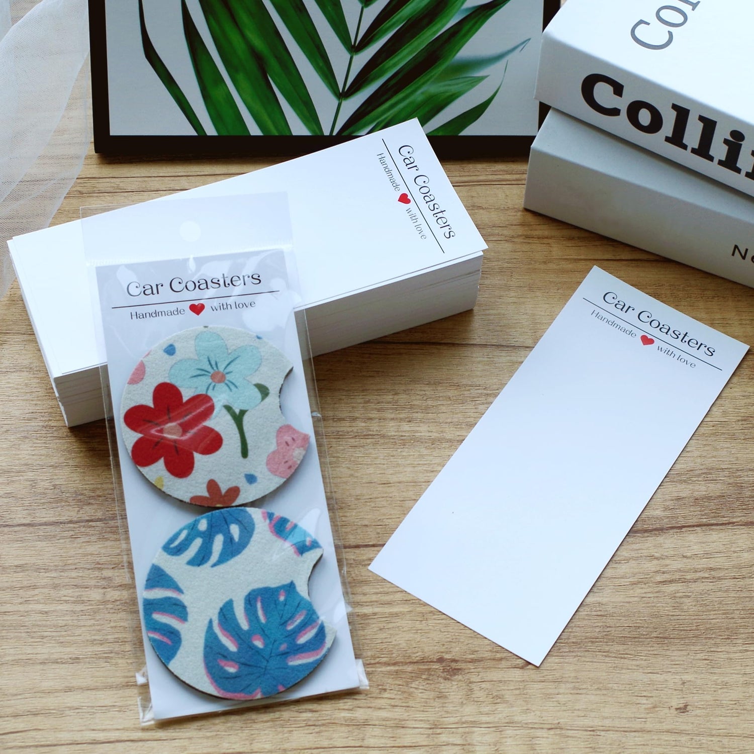 100PCS Car Coaster Packaging for Selling, Sublimation Blanks Car Coasters Cards with Bags, Sublimation Car Coasters Display Cards 6.8x2.85In, Heat Press Machines Accessories