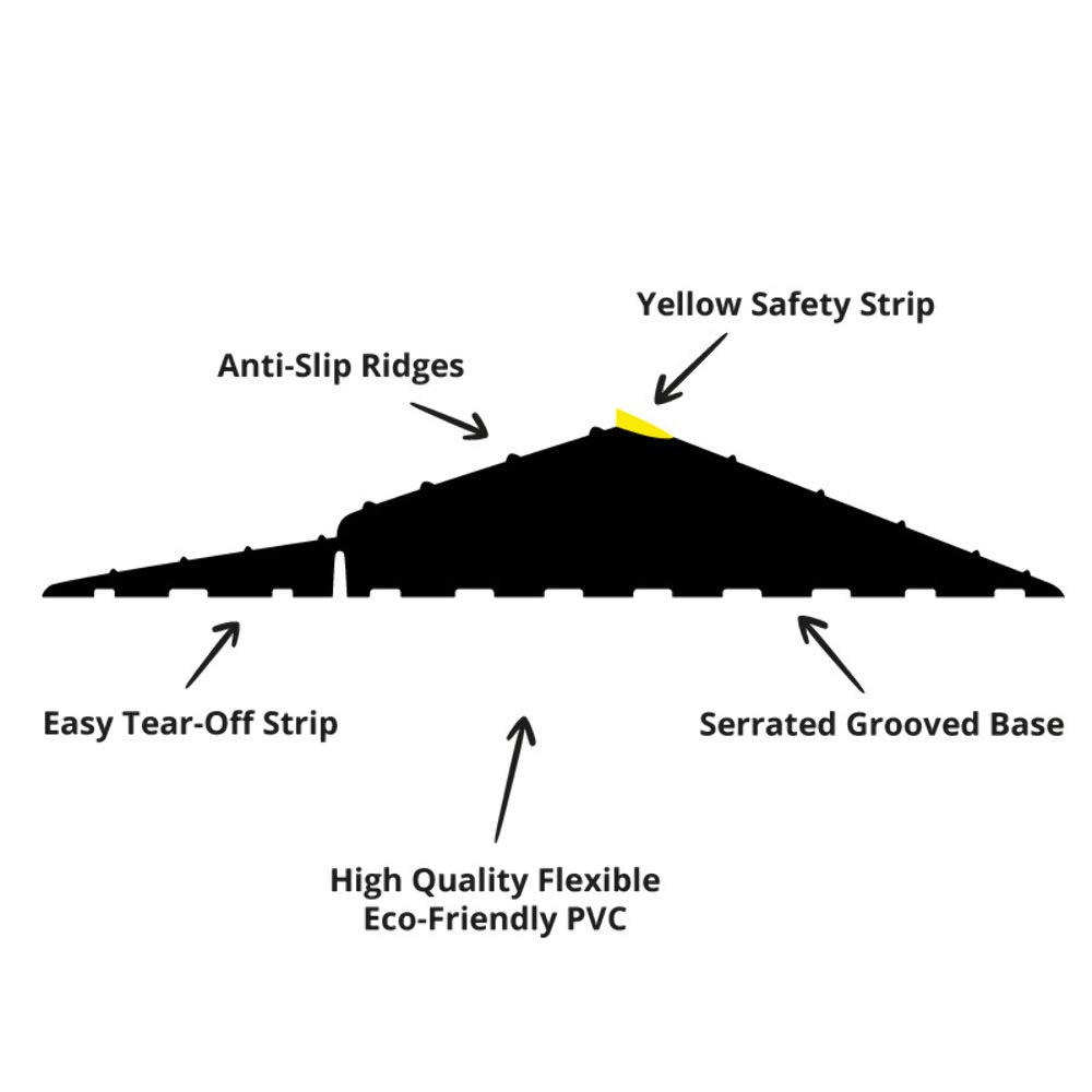 - UNIQUE NEAR-SYMETRIC DESIGN | Anti slip ridges across, high visibility yellow safety line, easy tear-off strip for creating a straight edge and serrated grooved base for excellent adhesion are all part of Weather Defender's unique registered design