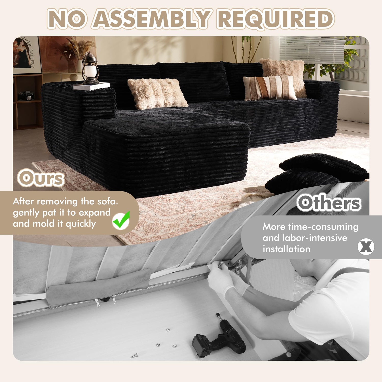 106" Cloud Sectional Couch with Chaise Longue,L Shaped Modular Modern Sofa,Comfy Corduroy Fluffy Couch with Deep Seat,No Assembly Required Couch for Living Room(Left,Plush Corduroy,Black)