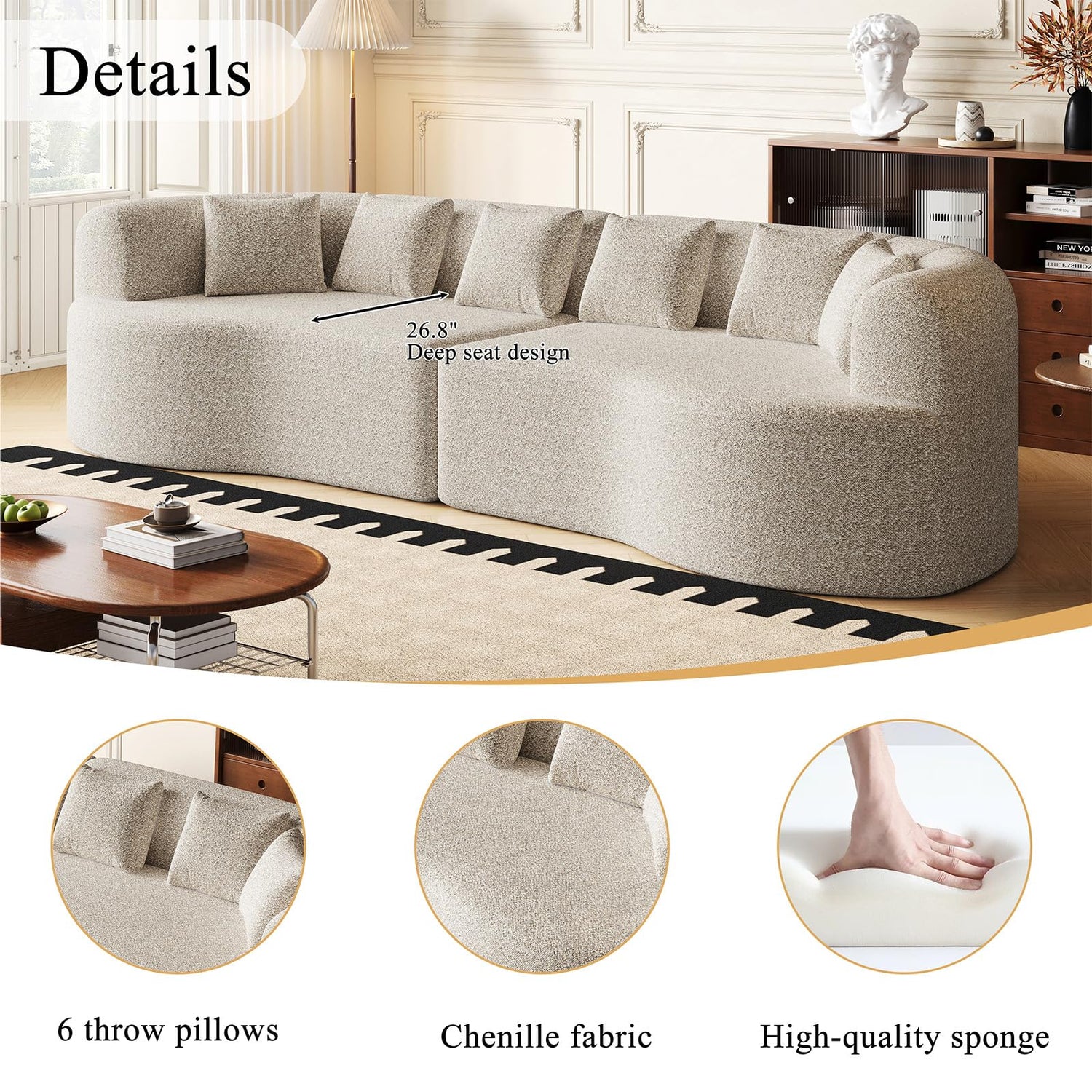 106” Oversized Curved Sectional Couch, Chenille Memory Foam Boneless Compression Sofa Couch with 6 Pillows, Modern Floor Deep Seat Sofa for Living Room, Office, Apartment, No Assembly Needed, Beige