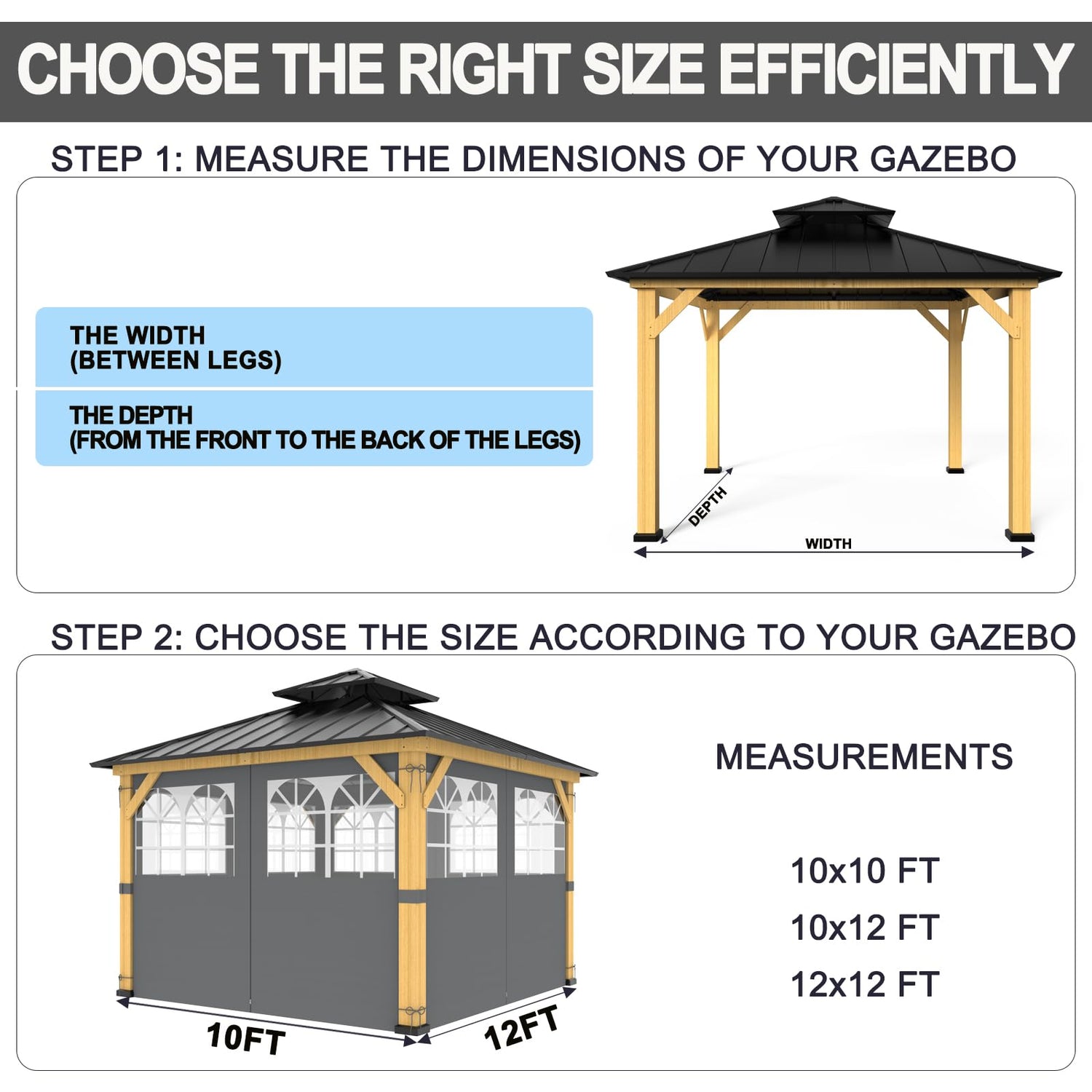 10ft x 12ft Gazebo Curtains,Privacy Replacement Sidewall with Church Window,4-Panel Universal Shade Curtains Set,Protecting Side Walls (Only Curtain)-Grey