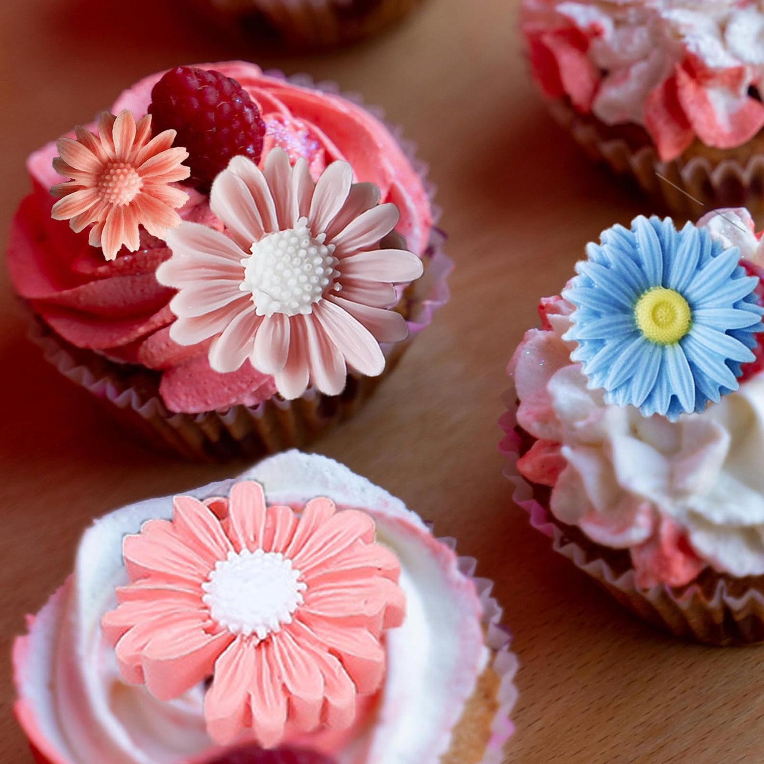 10PCS Daisy Flower Silicone Mold Chrysanthemum Flower Silicone Mold with Large-Eye Wicking Needle,Candlewick Resin Candle Molds DIY Soap Concrete Casting Polymer Clay Cupcake Topper Candy Craft