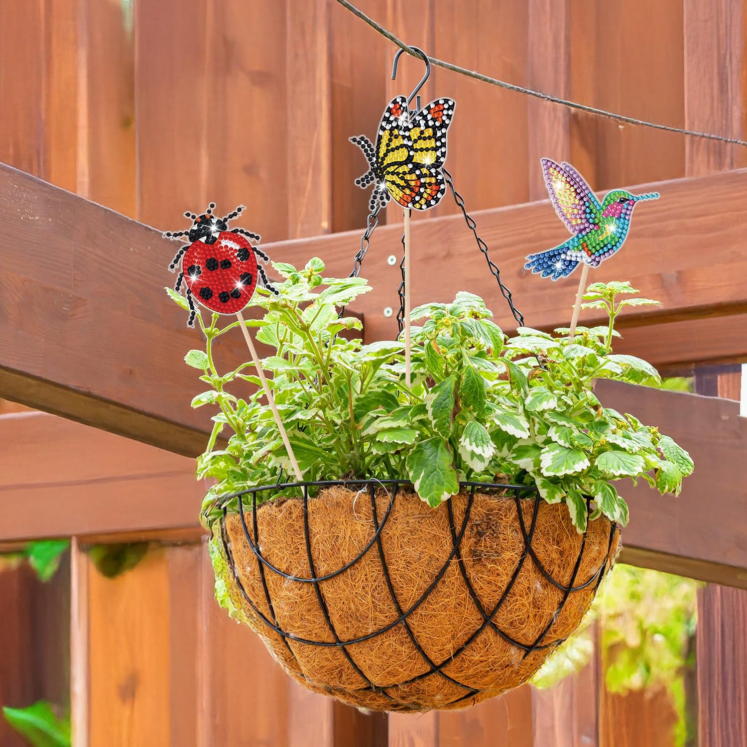 10Pcs Diamond Painting Kit Diamond Art Kits for Adults for Garden Decor with Butterfly, Hummingbird, Bee, Ladybug, Dragonfly,Dimond Art Paintings Arts and Crafts for Adults Gem Art for Yard Decoration