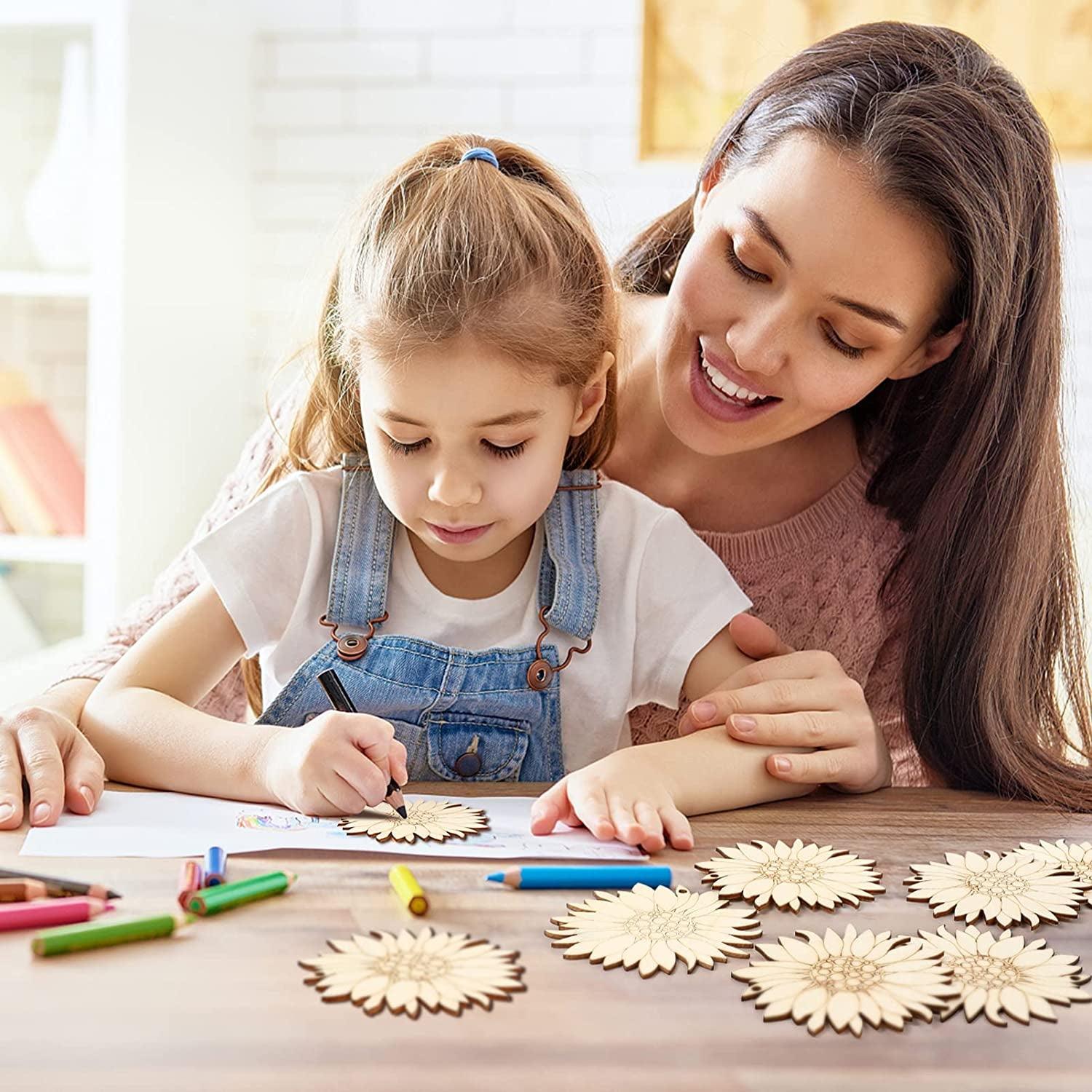 10Pcs Unfinished Wood Cutouts Sunflower Wooden Cutouts Sign Inspirational Wall Porch Art