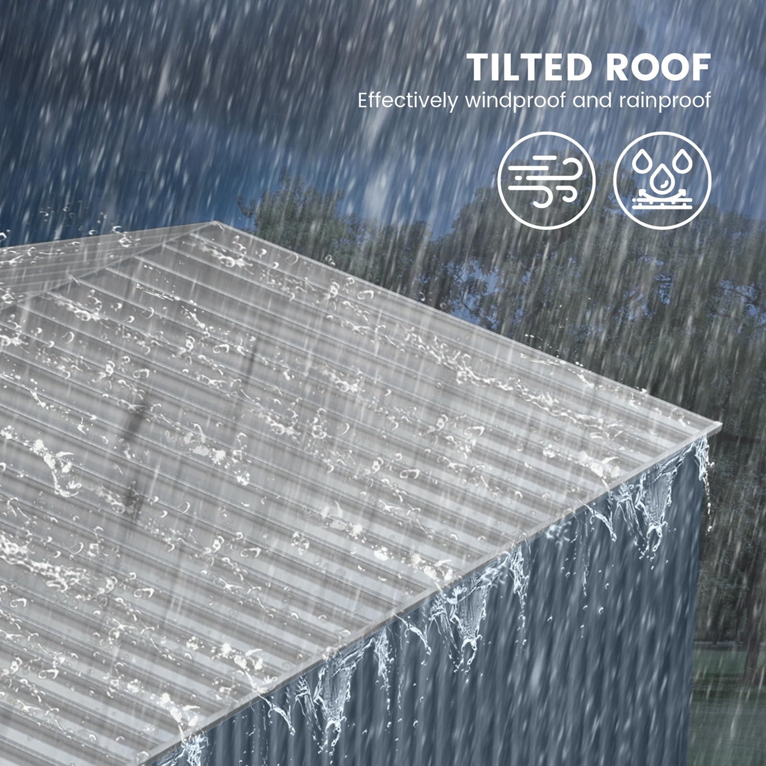 - Durable Quality: Made from high-quality metal, this garden shed is waterproof and UV resistant, offering dependable all-weather protection. Its durable construction withstands tough conditions, keeping your belongings safe and secure